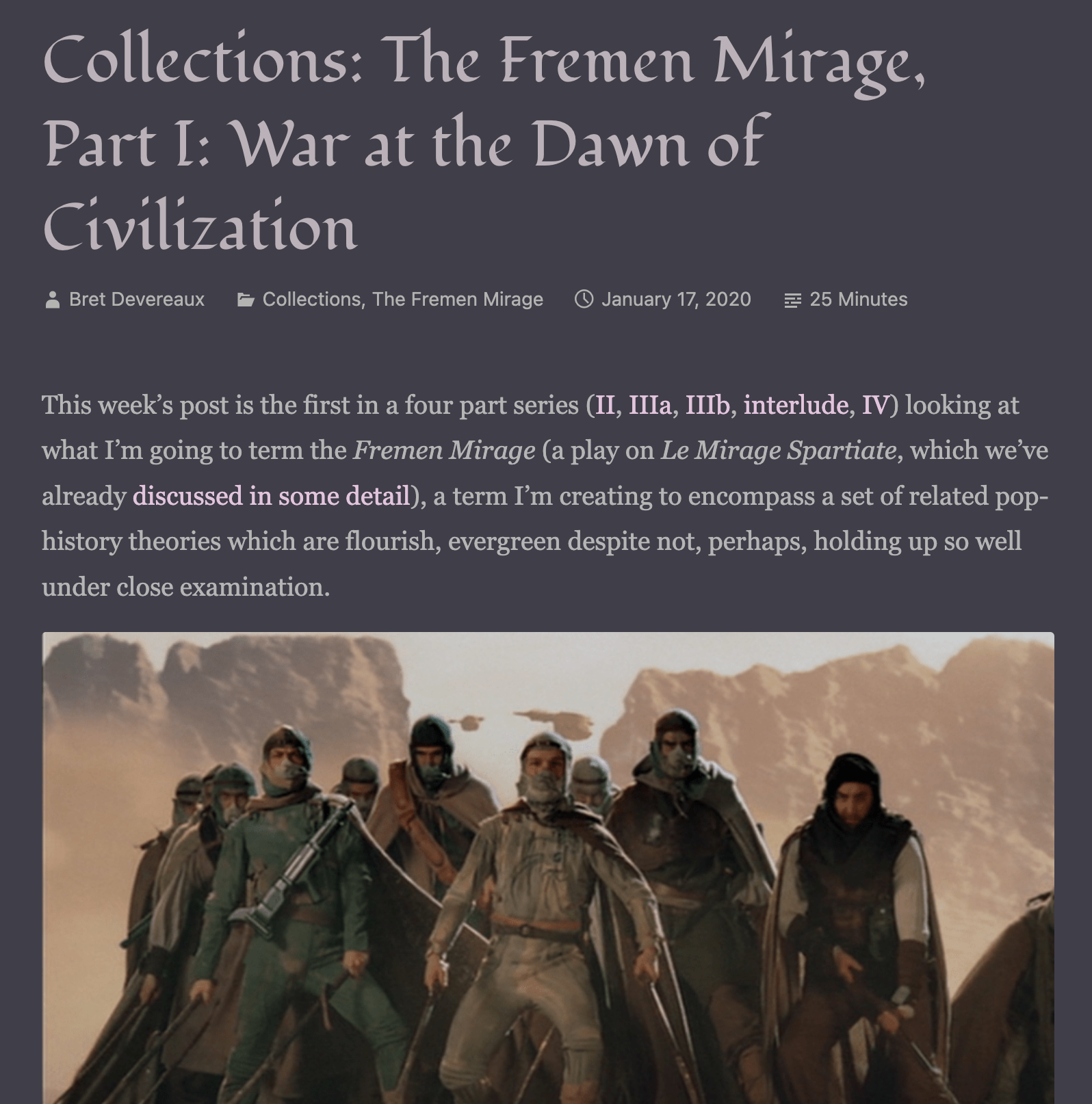 There was also that time the Afghans defeated the British army, leaving one (1) white male survivor of their entire force. That's probably more of an inspiration for dune.