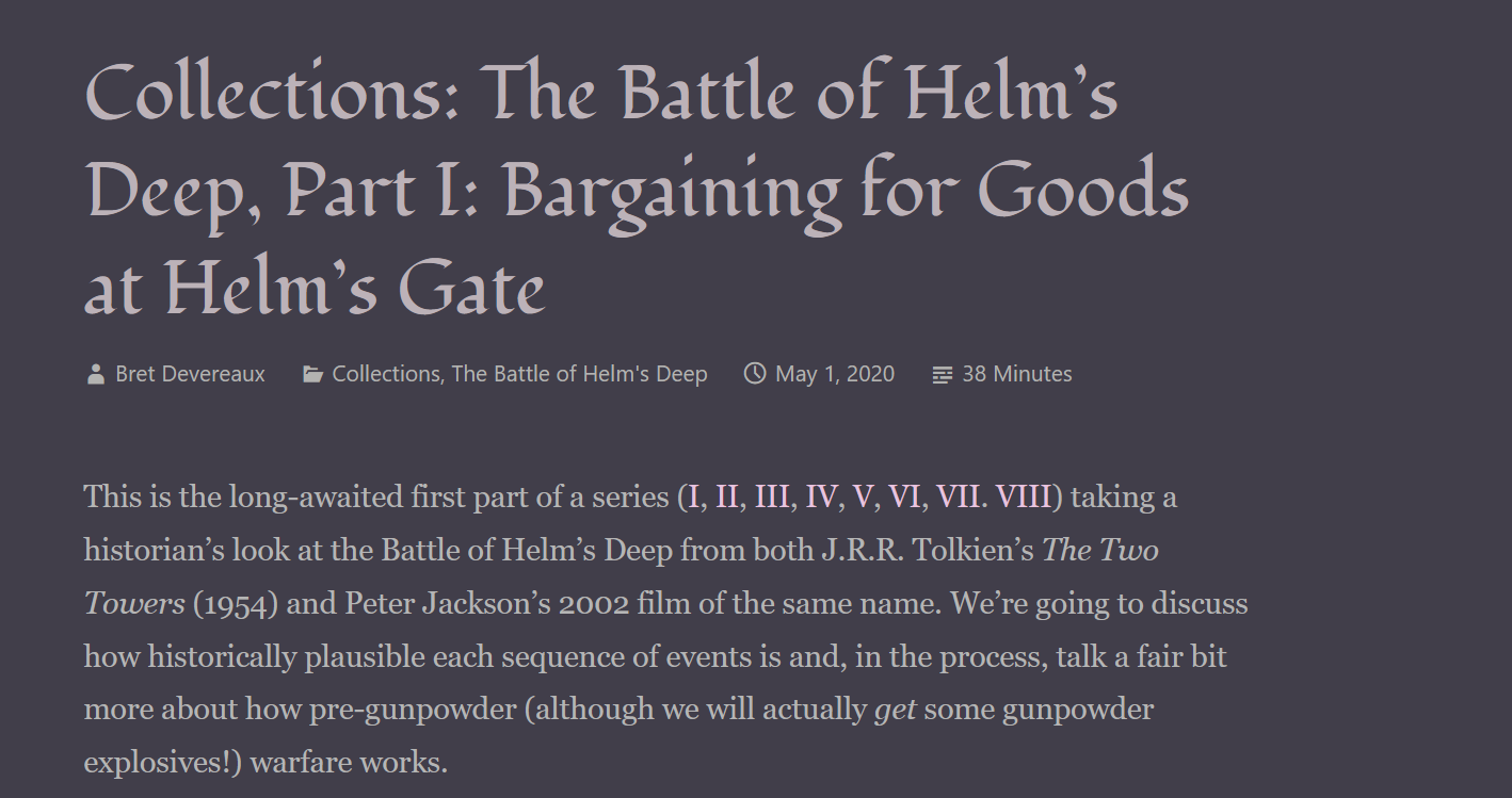 Bret Devereaux is an actual historian of ancient and medieval warfare. His stuff on LotR is very good.