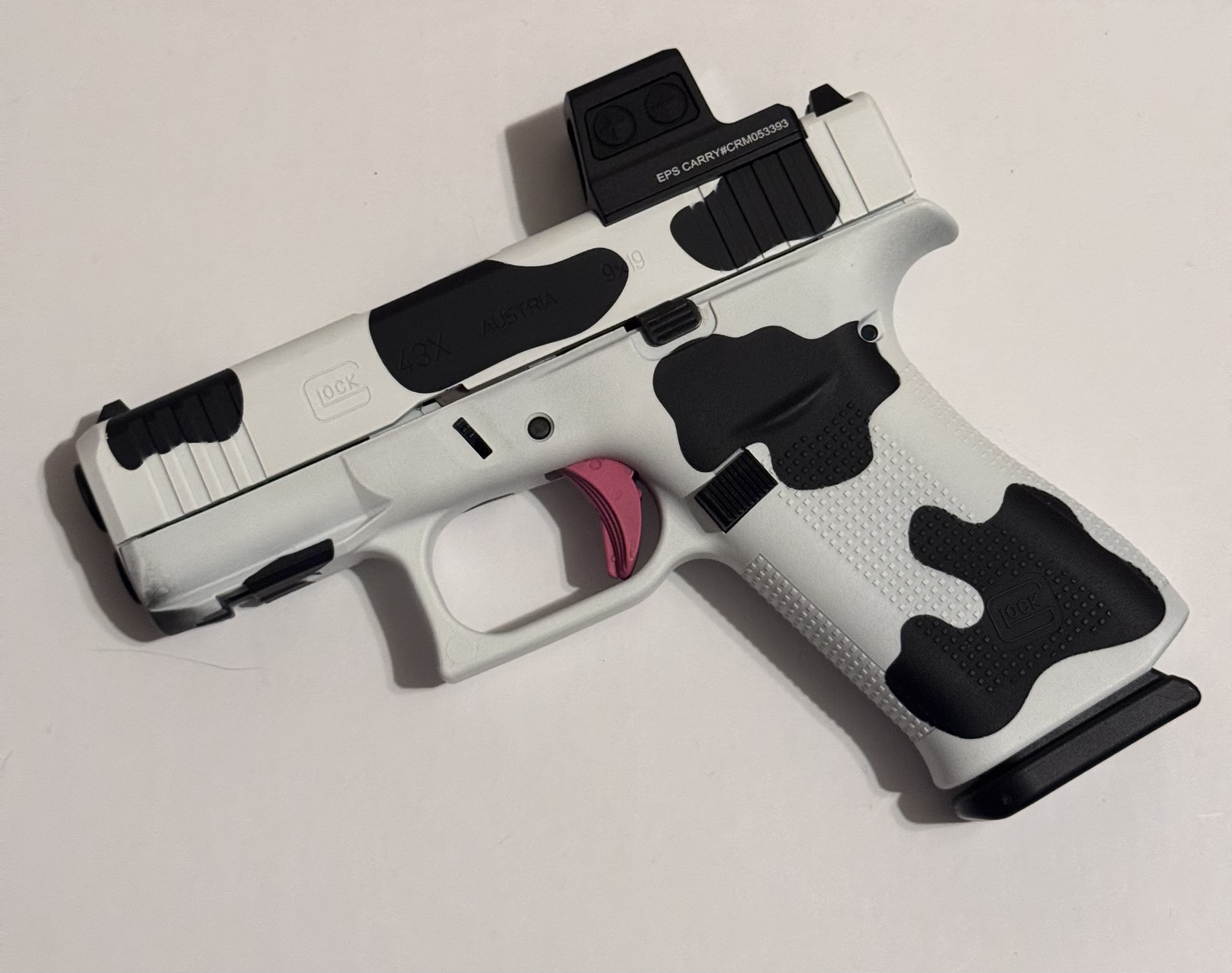 My wife convinced me to get the cow Glock which is the closest I’ve gotten to a pink gun.The cow Glock fucks though. No ragrets