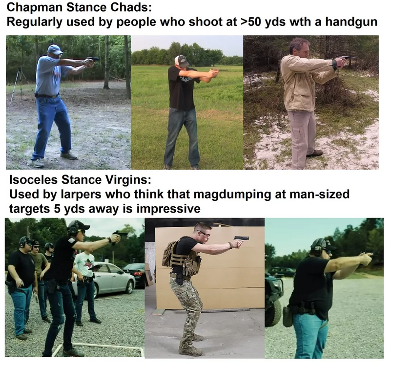 Gun owners will do literally anything but become good at shooting their guns. Shooting faster than them makes you a gamer. Shooting farther is unrealistic. The only valid form of handgun shooting is drawing your lint and sweat covered subcompact from under your beer gut and printing a lazy ass group on a paper plate at some as yet unknown distance. Anything more than that is absolutely beyond the pale and makes you a "competitionfag".