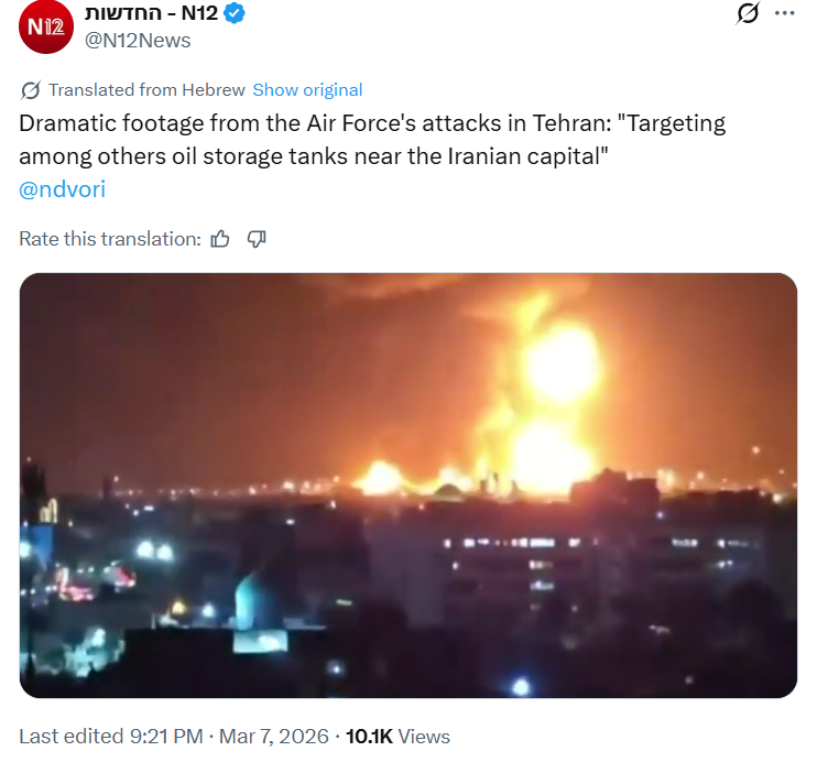 >>64944365Israel started dumping missiles into their oil infrastructure, specifically around Tehran. Seems like the goal is to create an insane refuge crisis with the 10s of millions of people that live around the capital, which may cause the regime to collapse. I think the entire goal here is to bomb them and create a Syria on crack.