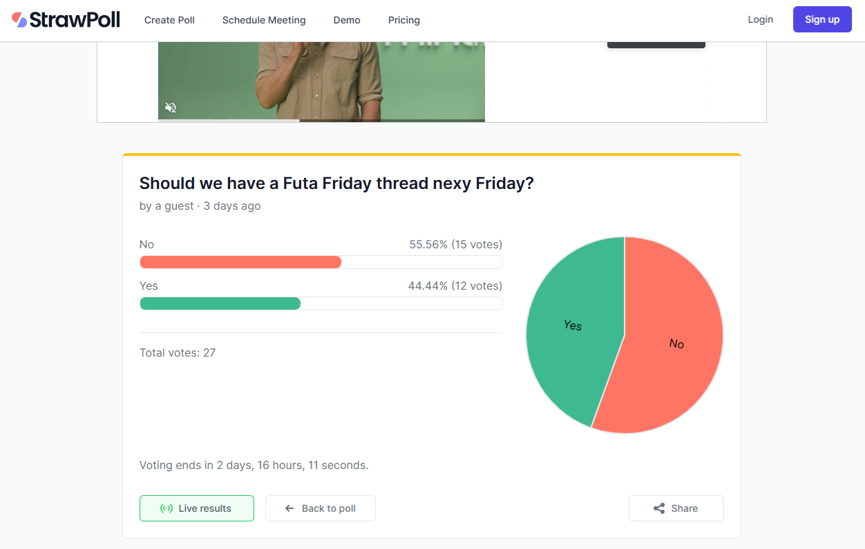 remember to get out there and vote, anons:https://strawpoll.com/40Zm4Ml6Aga