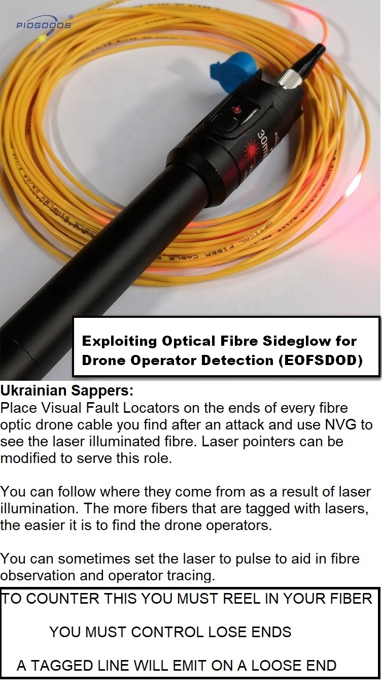 the laser penetrates the fiber optic cable, and overloads the fiber optic module (that translates laser into electric signals) so the video signal from the fiber optic drone is cut.