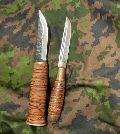 >>64967471>what is your favorite grip material?stacked birch bark>Do you enjoy stacked leather?No>Wood? Birch please>What about machine knurling on steel? That looks cool, right? Absolutely the fuck not>How about polymers and rubberized texturesOk on cheap knives or when it's gonna be slipperyPuukko is love, Puukko is life