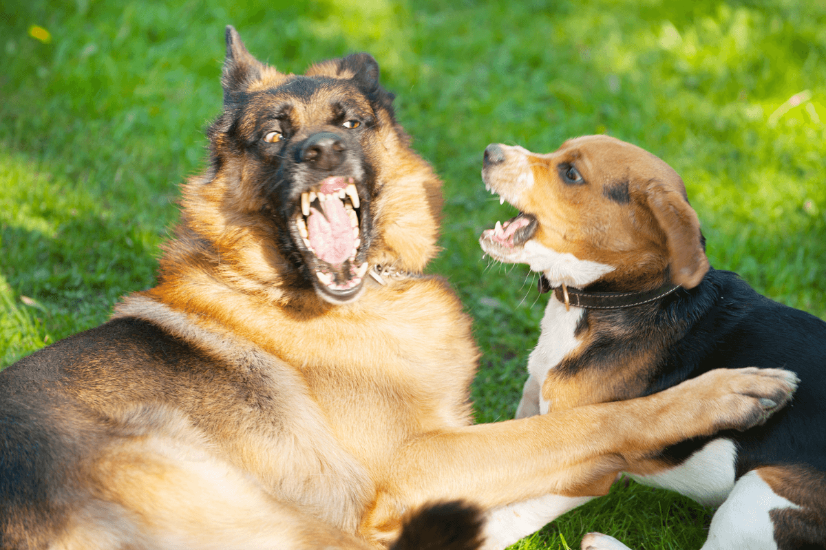 Someone said you can just force your hand down their throat in a pinch even if they bite on it. I dunno. Seems like that guy has never been attacked by a dog.