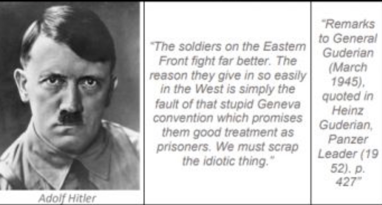 >>64982293The idea is that you want them to run the gauntlet rather than fight to the death. >>64982311And we give the enemy the outlet of Surrender Under the Geneva Conventions. Before that, surrender meant execution or slavery.
