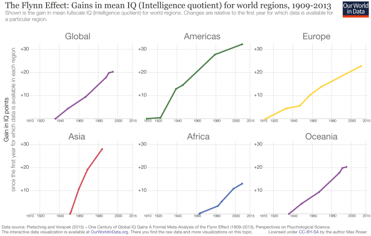 >>65003569Ok, so no evidence to share with the class. No surprise there. The real answer is exactly the opposite of your fever-dream reality btw. The whole thing has been studied in great detail for a very long time. https://en.wikipedia.org/wiki/Flynn_effect