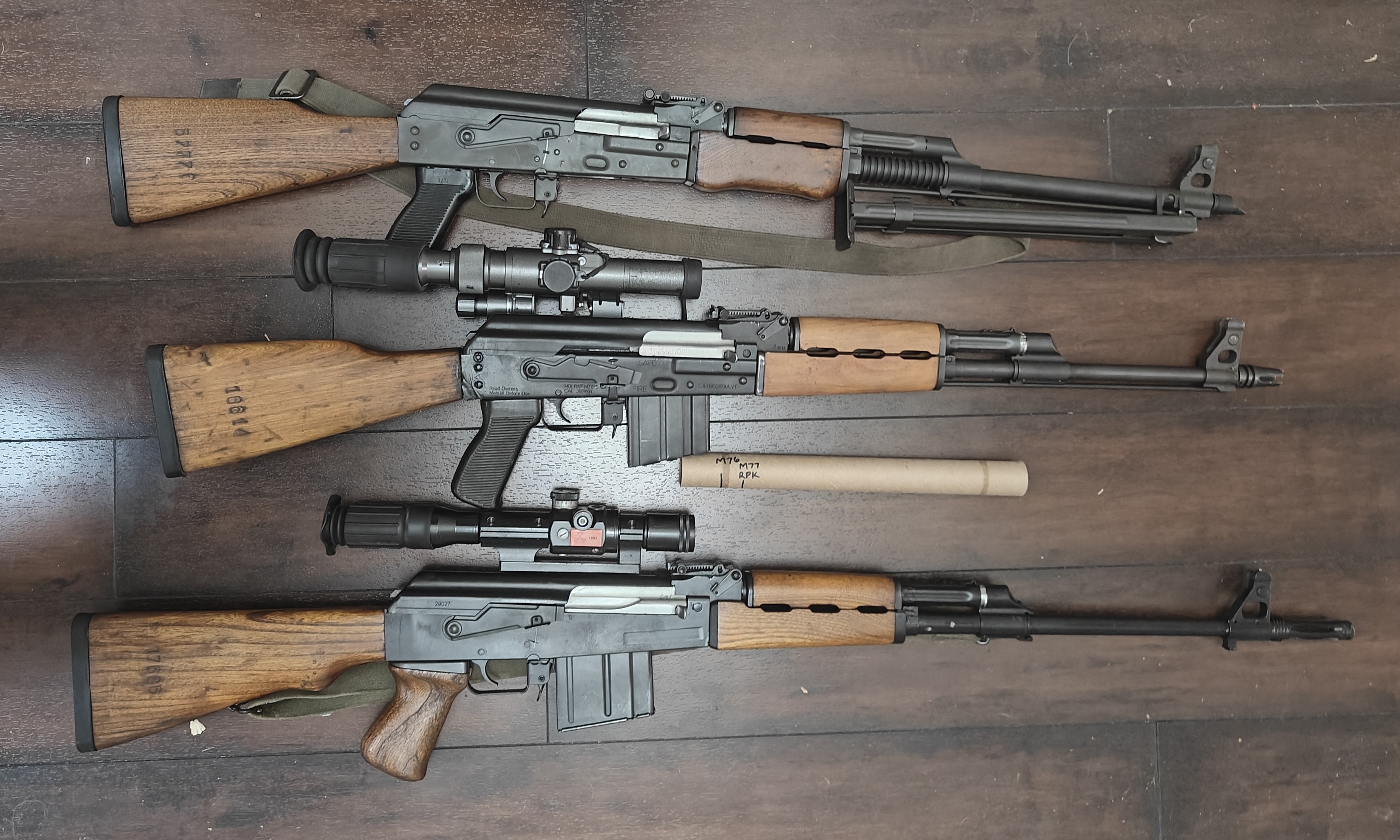 Parts kept in that order for top to bottom. M72 and M77 same length receiver. M76 definitely longer receiver. Paper tube marked for lengths of receivers