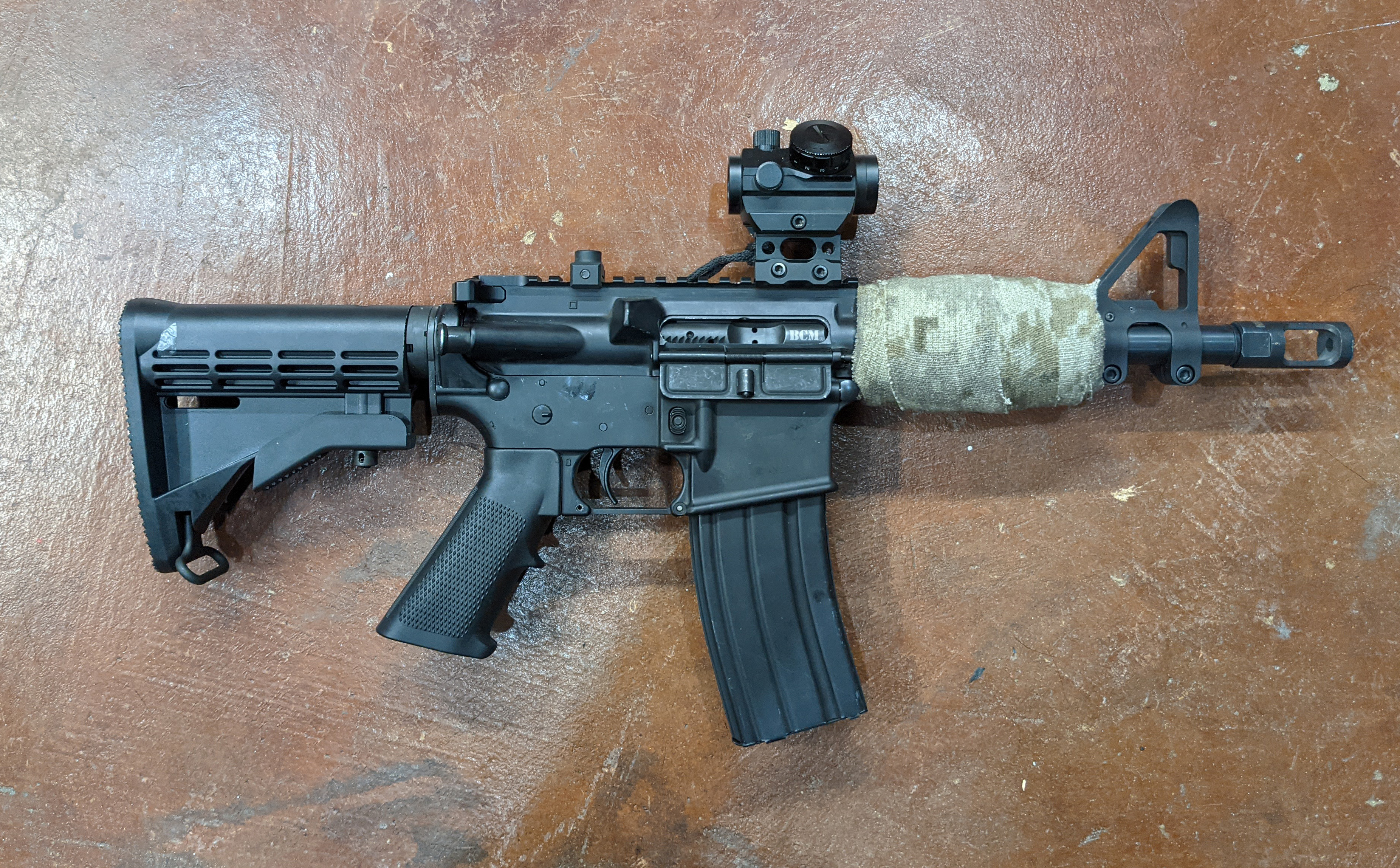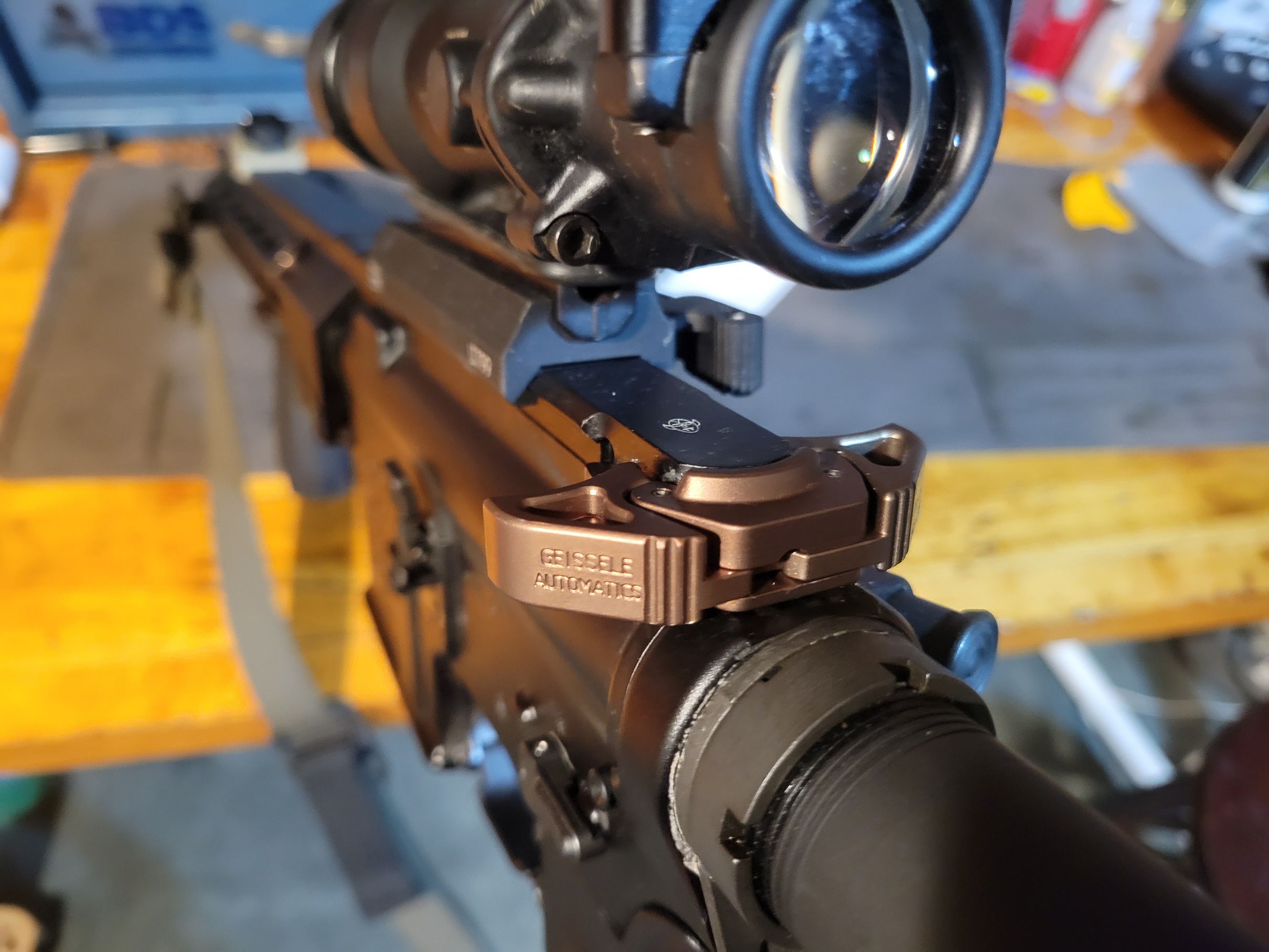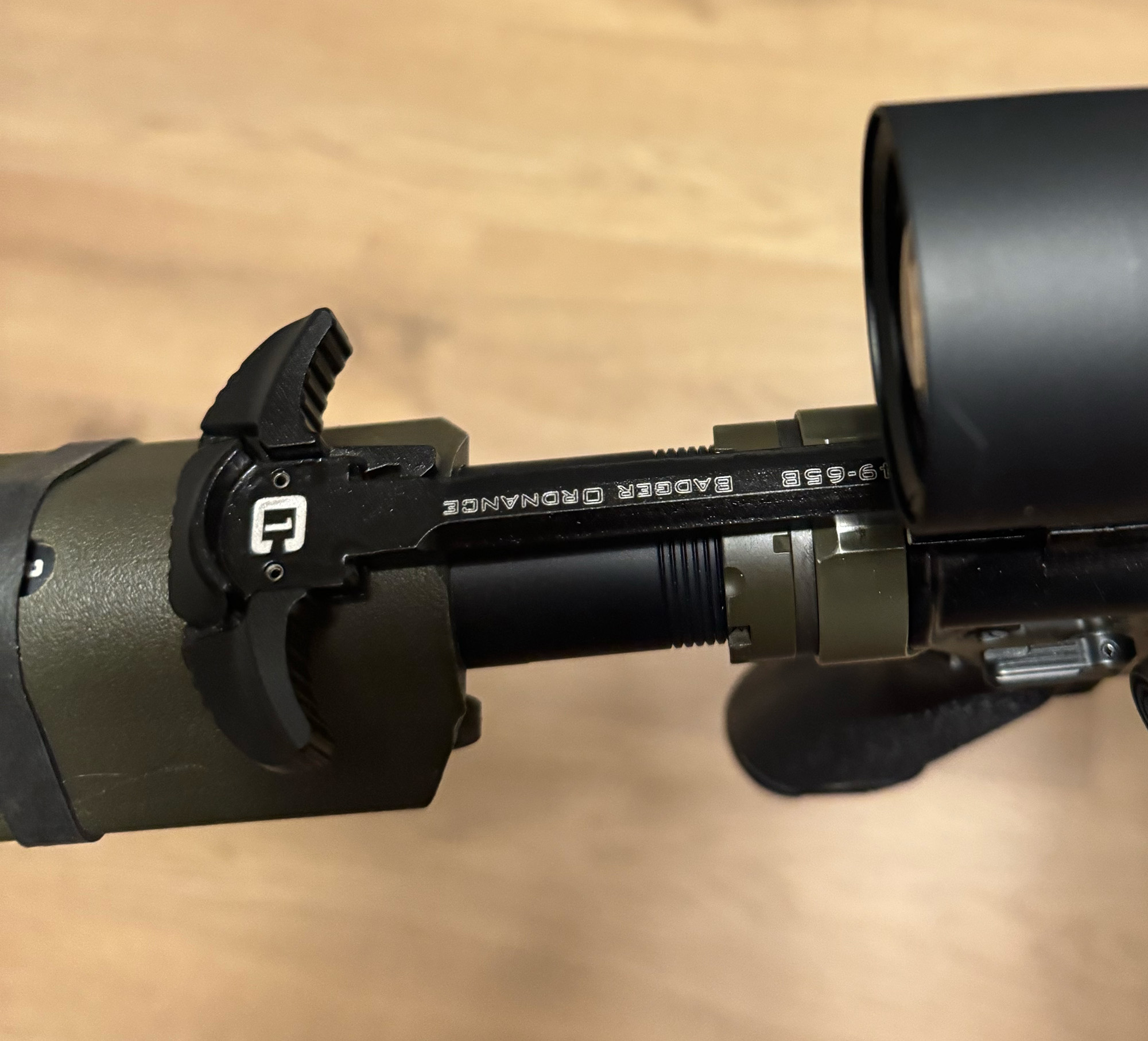 A2 I finally chopped my rail to have a flush fit for an AEM5/OCM5. Had to get a training suppressor for the cut though.