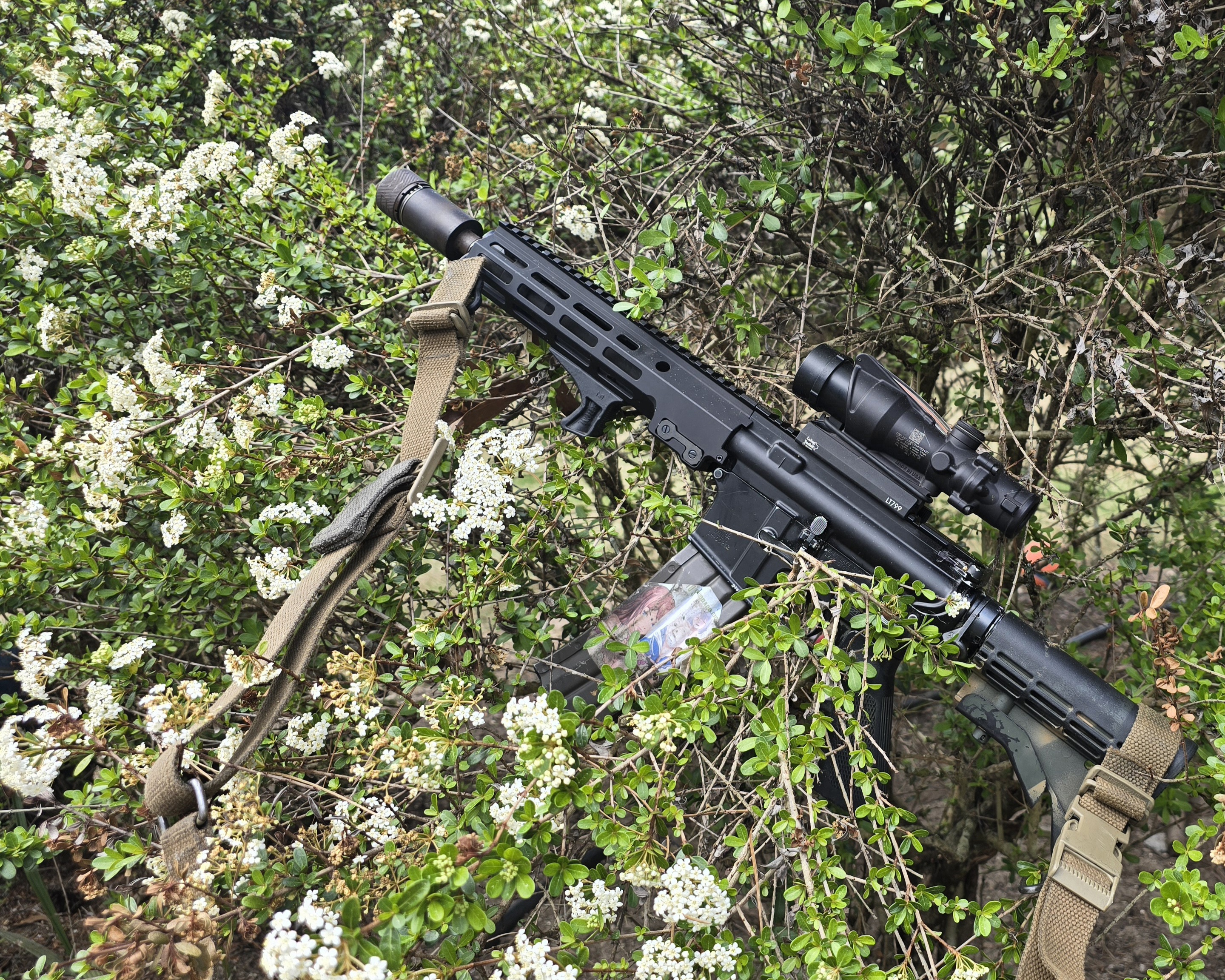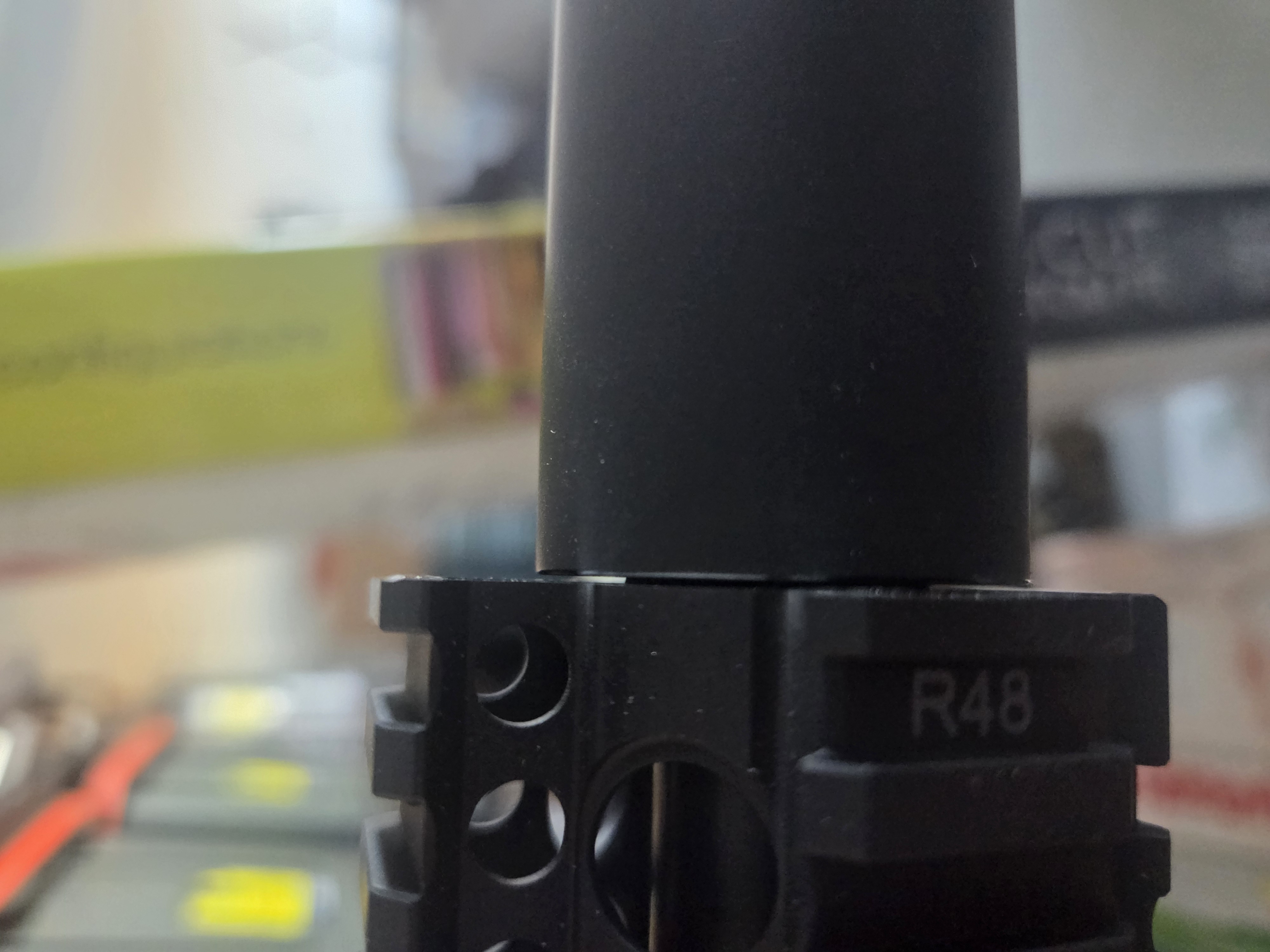 >>65003262I think an extended A2 (and maybe a 0.1"-ish shim in addition to the crush washer?) would put the bayonet ring on the end of the flash hider. It might look silly but I don't see why it wouldn't work.