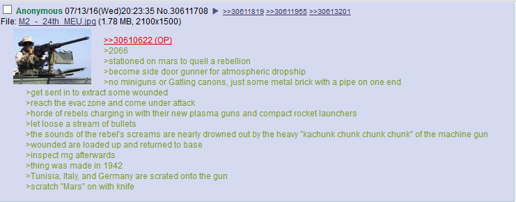 Yes, it may lack some armor penetration. Yes, it requires heavy and bulky supply of ammo. Yes, baseline humans may require multiple soldiers working as a team to operate one. But what it lacks in those areas, it makes up in sheer volley of concentrated fire.