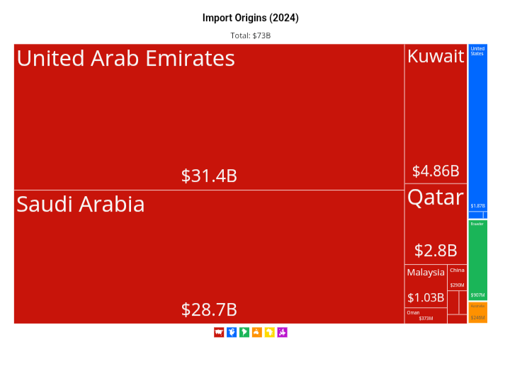 Every barrel of oil on the planet has to be bought or sold in USD, that gives the United States de-facto as well as de jure control over the entire world's oil market. The only countries willing to risk not going along with this were Venezuela (Now under new management), Iran (Currently being bombed into the stone age), Russia (Currently falling on its sword and dying) and China (No longer getting any oil through Hormuz). There's also Indonesia/Singapore, who control the majority of what used to be the Dutch East Indies oil deposits, but they absolutely hate the Chinese and largely refuse to do business with them so there's been no reason to interfere in their local regional market.