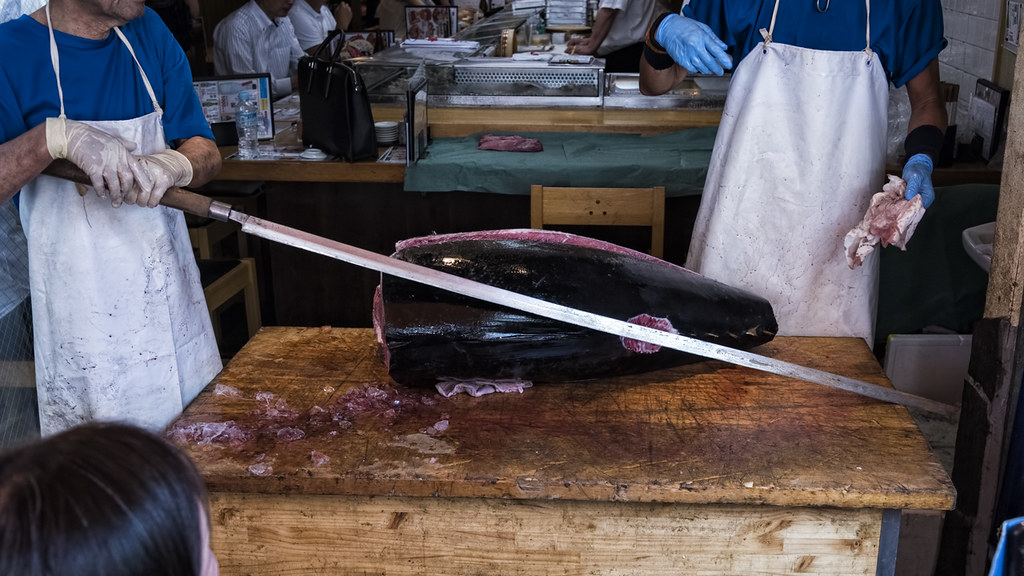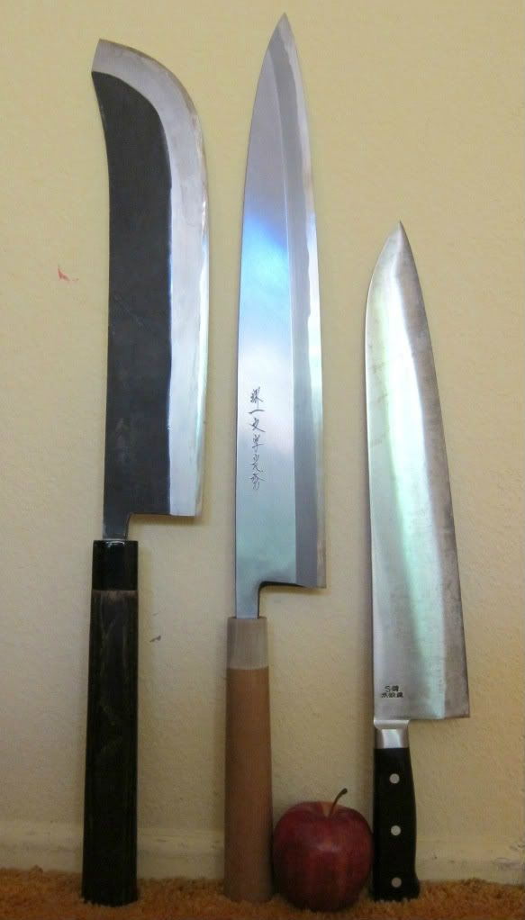 The Japs have maximum autism when it comes to kitchen knives, I'll post a few of the most unusual.This is a Maguro Kiri aka Maguro Bocho, a special knife for filleting tuna. Blades range from 3-5 feet not including the handle. The blade is flexible. Because the blade is so flexible it's common for a second person to hold the tip of the blade--using a bunch of folded-up paper for protection--to help guide the cut.