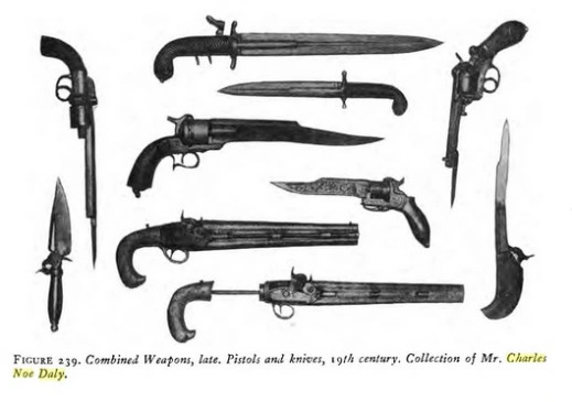 >>65080043>sticking a gun on it seems to have been pretty popular if you had the cashYeah, that was the same in Europe. You will find things like fine table cutlery with built-in flintlocks, Hunting swords with integral pistols (hirschfangers, etc.), that famous knife with the feast calendar etched onto the blade (picrel), etc. And of course Euros had various combination weapons that were actually meant for combat, like the holy water sprinkler, flintlock boarding axes from the age of sail, etc. But I think India has a lot more examples of guns being tacked onto things that blurred the lines between "rich man's toy" and "actual weapon".