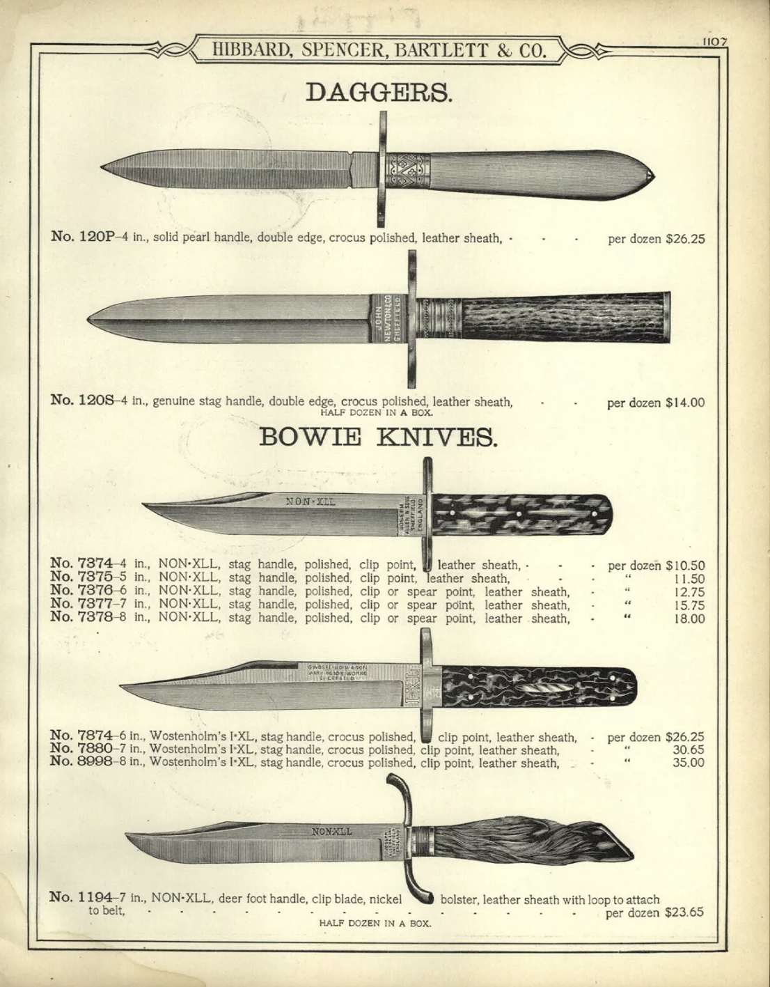 US shop order trade catalog, ca. 1890’s, with prostitute / gambler and many other knives shown here.