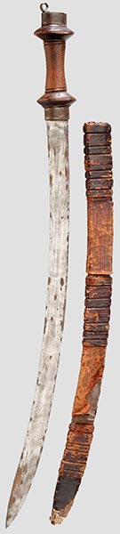ContribootinTaiwanese lalaw sword. Used by the indigenous tribes for headhunting until it was outlawed by the Japanese occupation. Distinctive for their open-faced scabbard to drain water given Taiwan's tropical climate.