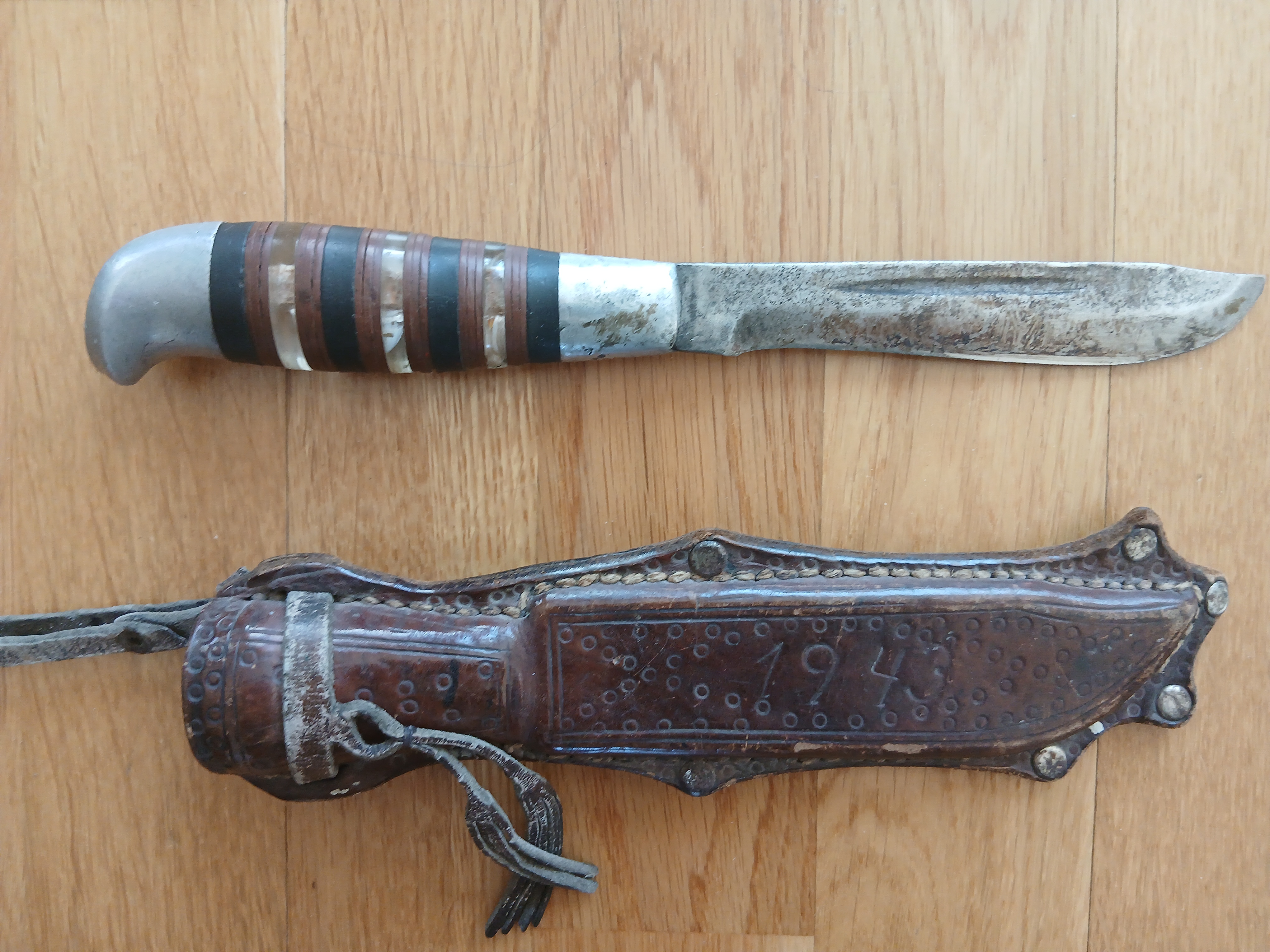 >>65005108I have couple of different puukko's but here is the family heritage one that my grandmothers father made in the front during the Continuation war. He was blasting soviets as a Mg gunner in the winter war and was an artillery man during the Continuation war.The aluminium is supposedly from a downed soviet plane