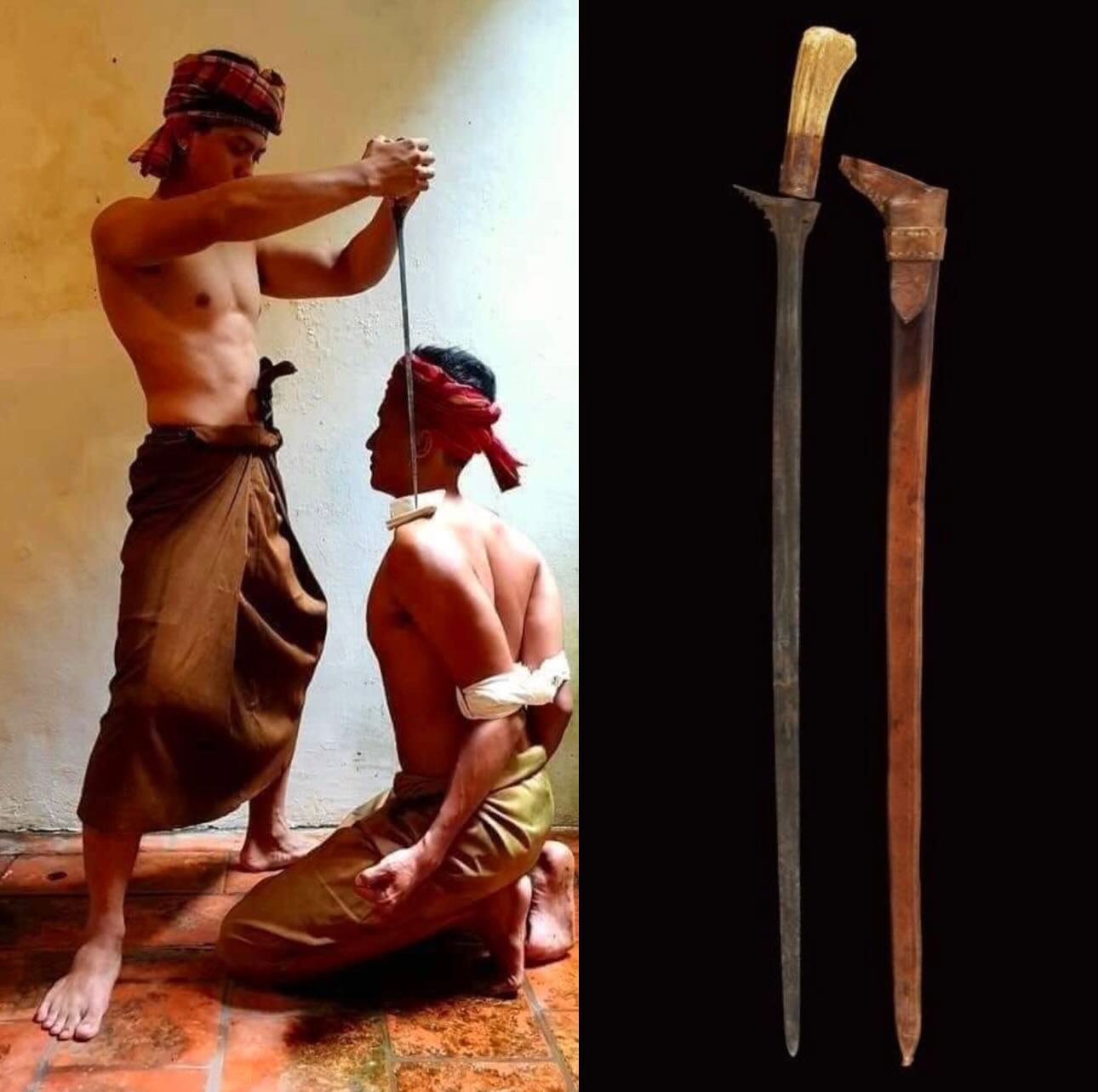 >>65069673That's called a Bangkinang, which was typically for executions and they'd be done with the prisoner on the ground with their back up in sort of a fetal position and the knife poked into their heart between the ribs from behind.>>65070206The thing I like about that is the sheath decorations with the circles O as its something people did over 1000's of years