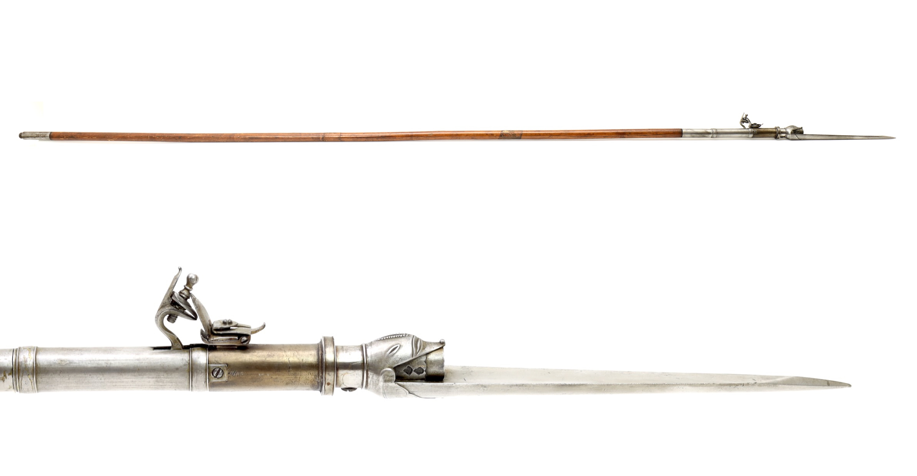 >>65079417>they kept using them into the early 1800s like the japanese tanegashima'sYeah, interestingly both cultures developed those revolver style matchlocks too. The Japanese ones tended to be handguns while the Indian ones were usually long guns, but examples of the other extremes exist too.Speaking of round handles, they did make some odd combination weapons where the gun barrel acted as a handle, though that's clearly not what's going on with that particular weapon. A cylindrical handle is an odd choice for a weapon like that, then again that looks more like a work of art than an actual fighting weapon.
