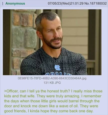 >>65006608Never, NEVER kill yourself anon, its not worth it... if you kill yourself who is gonna give the deranged, clearly guilty, interviews to local media and police in the (not very) mysterious case of your missing family? (Make sure to refer to the missing wife and kiddies in the past tense, thats always funny) Anyway, dont take the cowards way out and give something back to the community in the form of enough material to make multiple hour long true crime youtube documentaries. Its the least you can do.