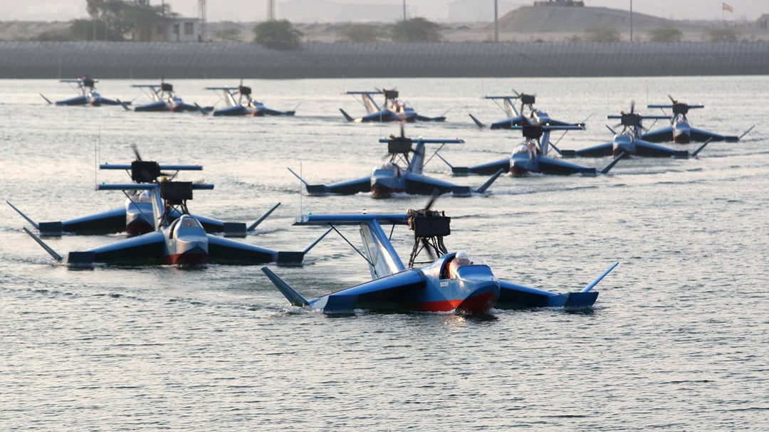 Jetskis are not faster than warships in real world conditions unless the water is very calm. Even just choppy water is pretty shit for a jetski and they'd be practically unusable for military operations in normal conditions in the Strait of Hormuz.