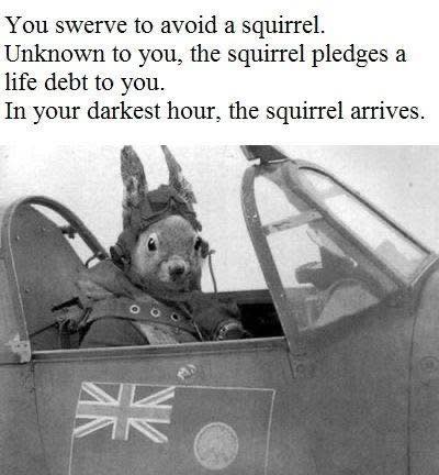But still, not as cool as a squirrel in a tiny little Hurricane IIB raping drones with twelve little Browning MG's, all to a Ron Goodwin soundtrack.