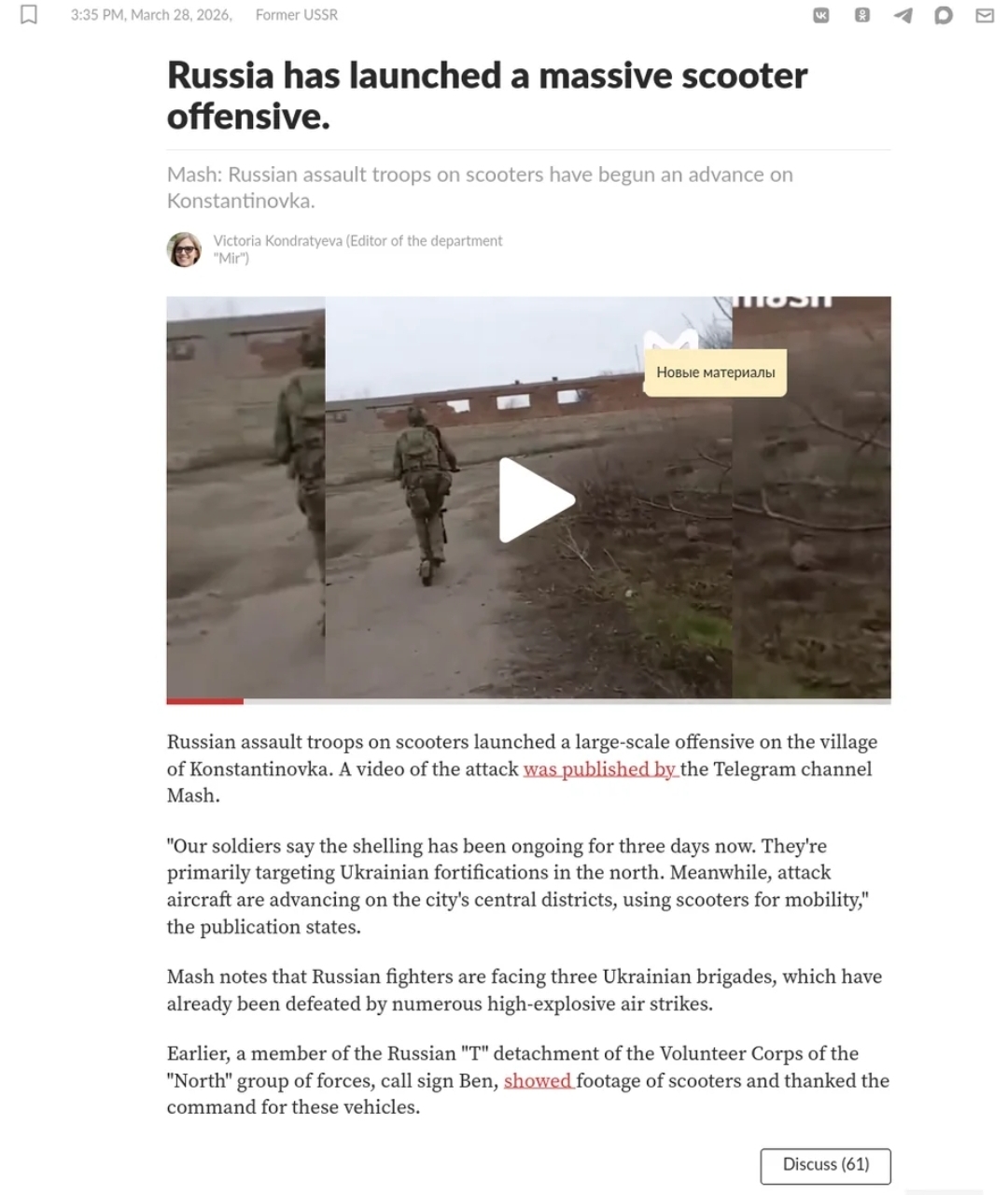 >Meanwhile, attack aircraft are advancing on the city's central districts, using scooters for mobility,