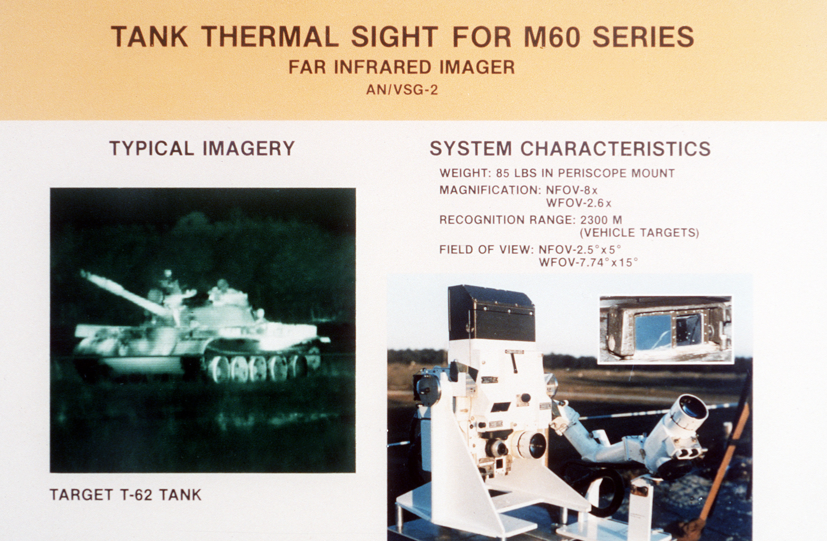 >>65023168The reason the M60 TTS had a better thermal sight than the Abrams was the amount of available volume to work with. M60s are mansions on tracks so there was all the space in the world to minmax the thermal sights. They're good sights, given that was the first thermals equipped MBT.