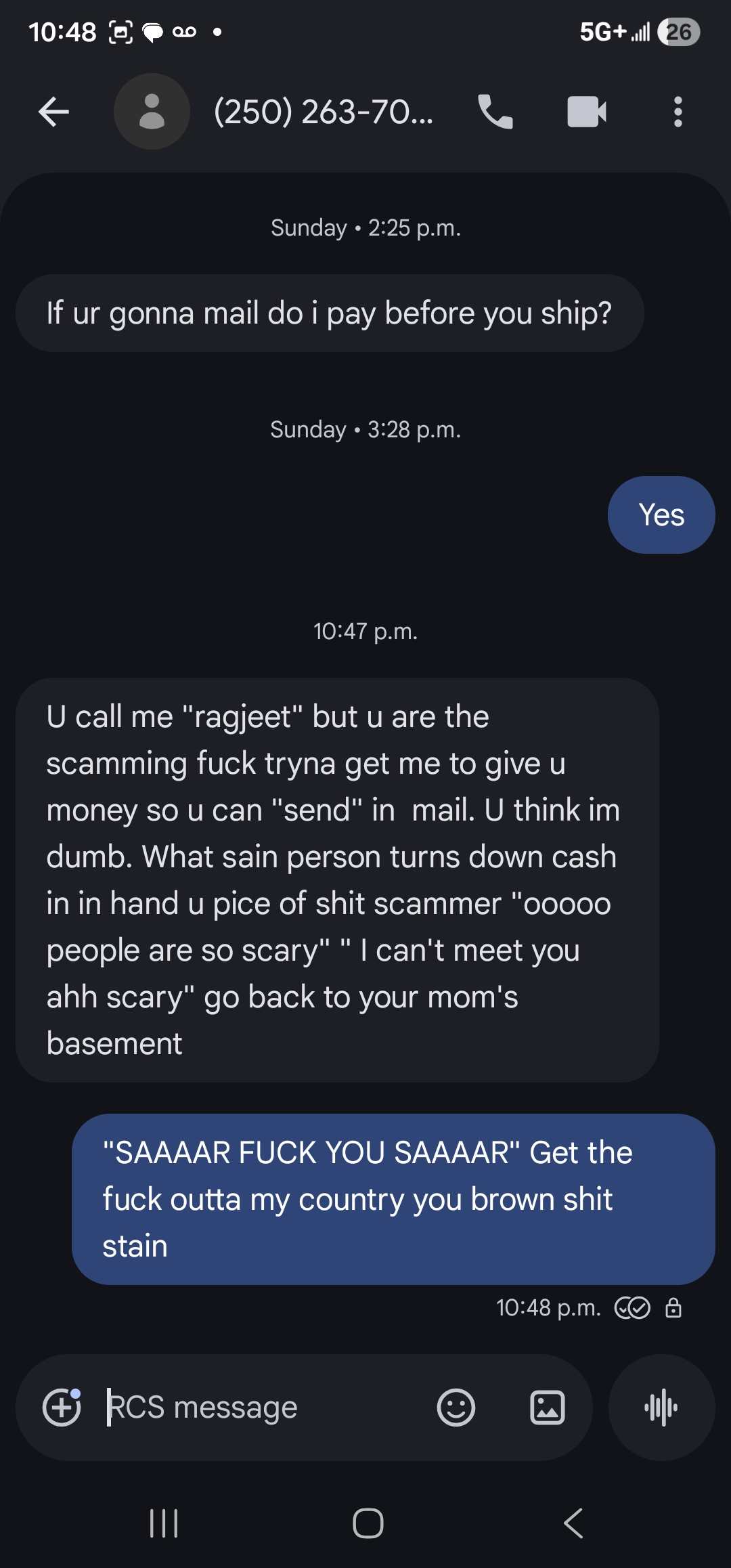 Same indian scammer on gp messaged me again not realizing im the same guy he tried this on last time.Only proper response, pic rel.