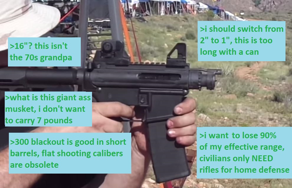 >>65042296>no suppressorWhy would you need one?>no thermal monocularWhy would you need one?>no NODpilots already have night vision gogglesThe rifle is only there in case the pilot fails at E&E. You're one dude being hunted down by platoons worth of men trying to find you. The rifle is purely for defense and follows the same logic for why the Army equipped rear echelon guys with M1 carbines instead of pistols during WWII: because pistols are hard. Rifles are easier.