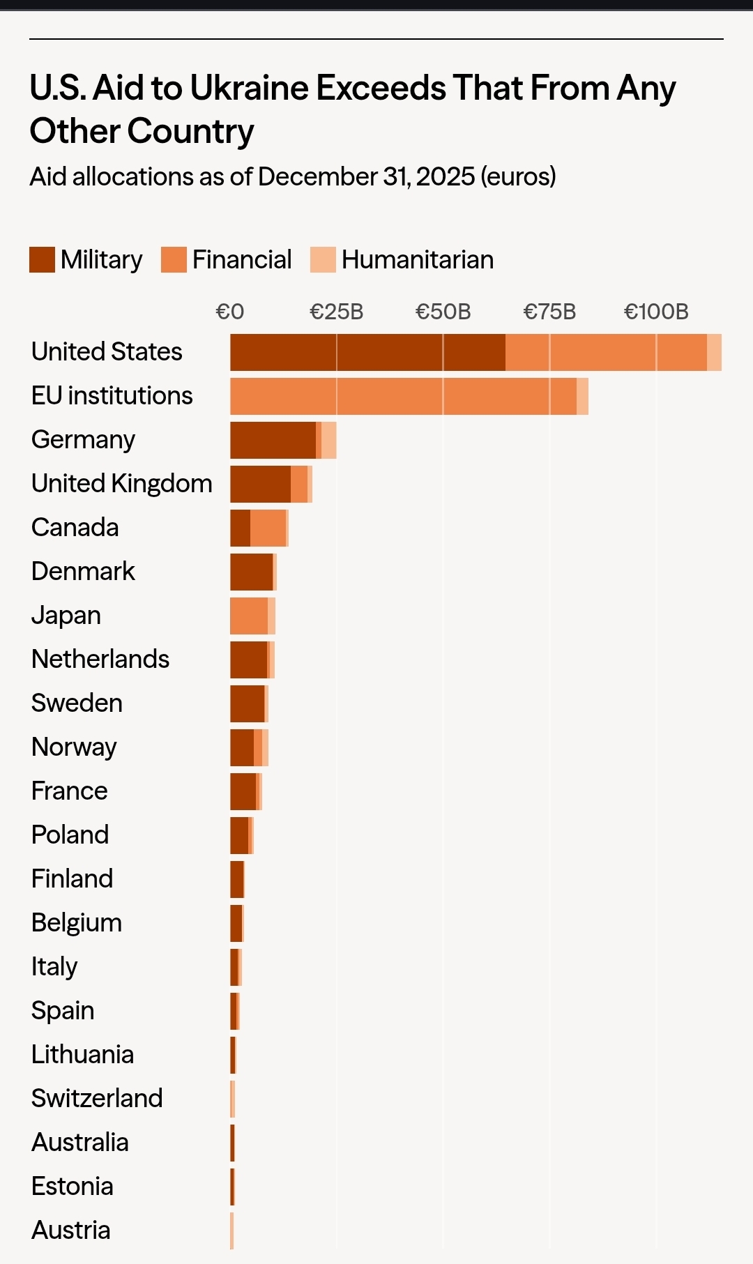 >>65043669due I'm pointing out that you are asking why there isn't a single European country that has provided more in absolute terms than the US as a wholethat's like asking why there isn't a US state that'd given more than the EU combinedthe US chose to help Ukraine because a) it has treaty with it obliging it to do sob) because it's in it's own interest to blunt russian aggressionc) it was working with allies to do so you will note that a) Europe doesn't have an obligation to help the US in a war that it chose to start. b) Europe has no interest in encouraging the US to start frivolous warsc) the US didn't even bother asking them until after it became clear it wasn't going as planned