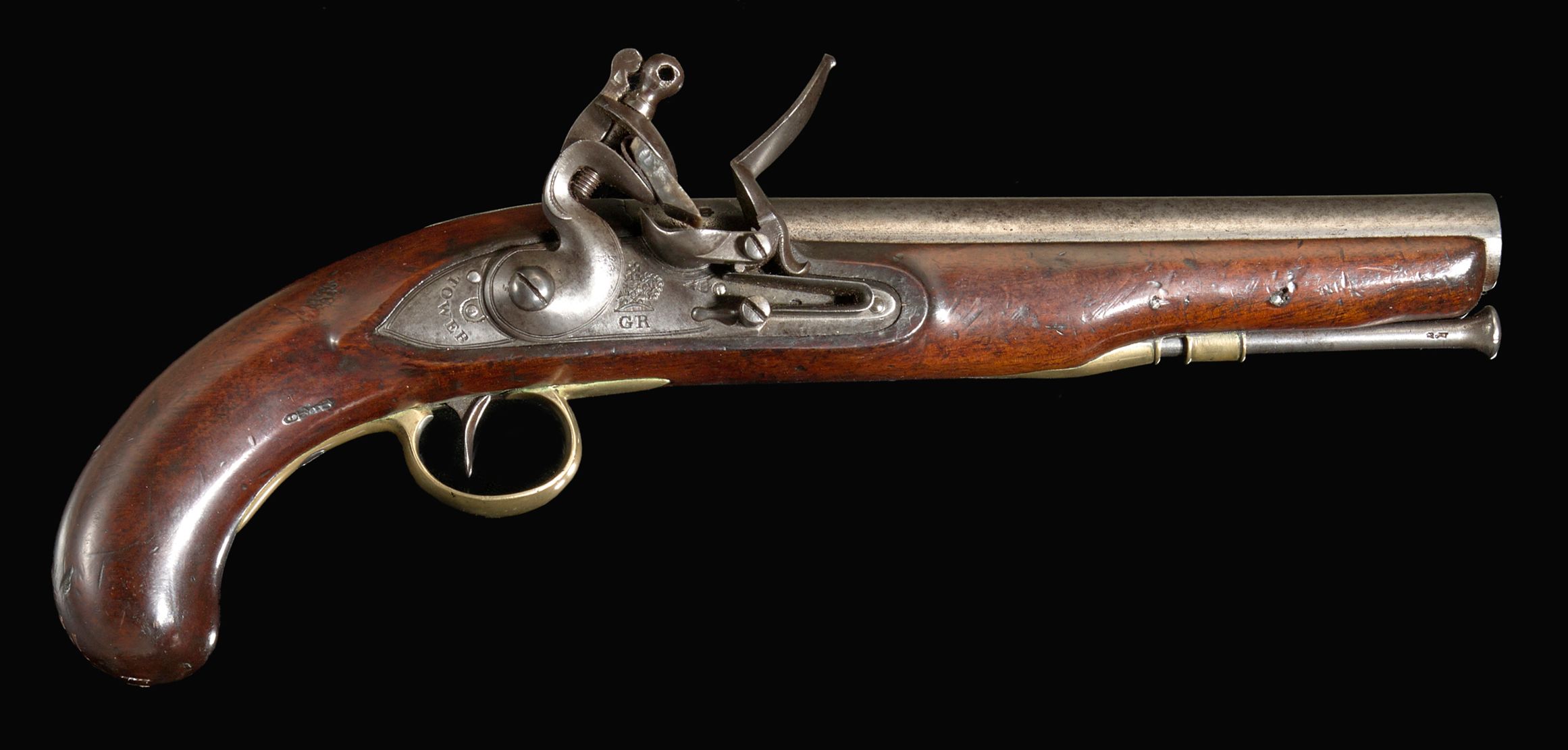 >>65045900A Pattern 1796 Heavy Dragoon flintlock pistolRound 9 inch, .77 caliber smoothbore barrelYou'll understand when you hold it. This is a massive pistol. Extremely powerful.
