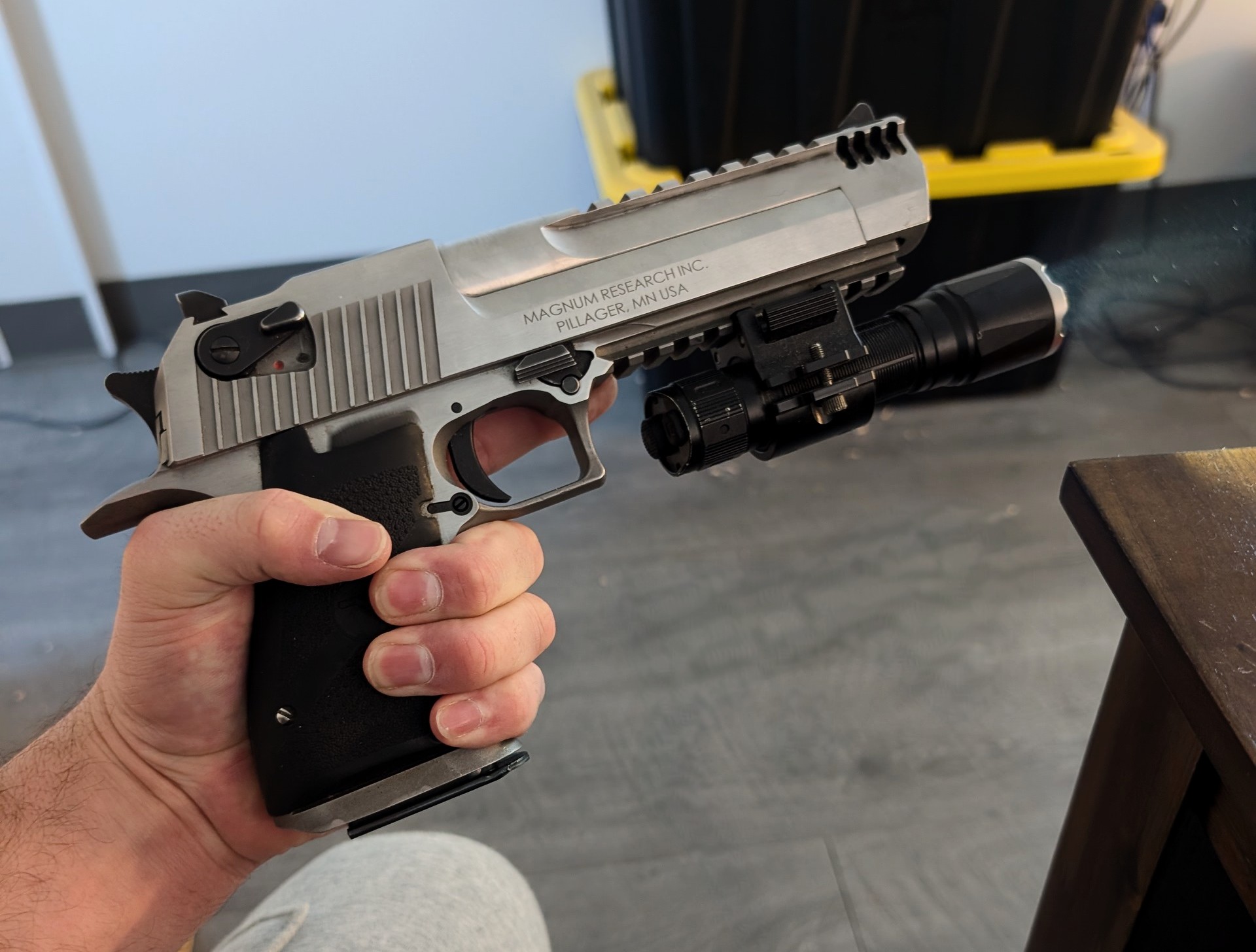 Is the Deaglefriend from the last thread still here? How's the .50 treating you? My baby here is the .44 and it's still one of my prized possessions. My local gun shop has two Mk. VIIs for cheap that I'm debating picking up.