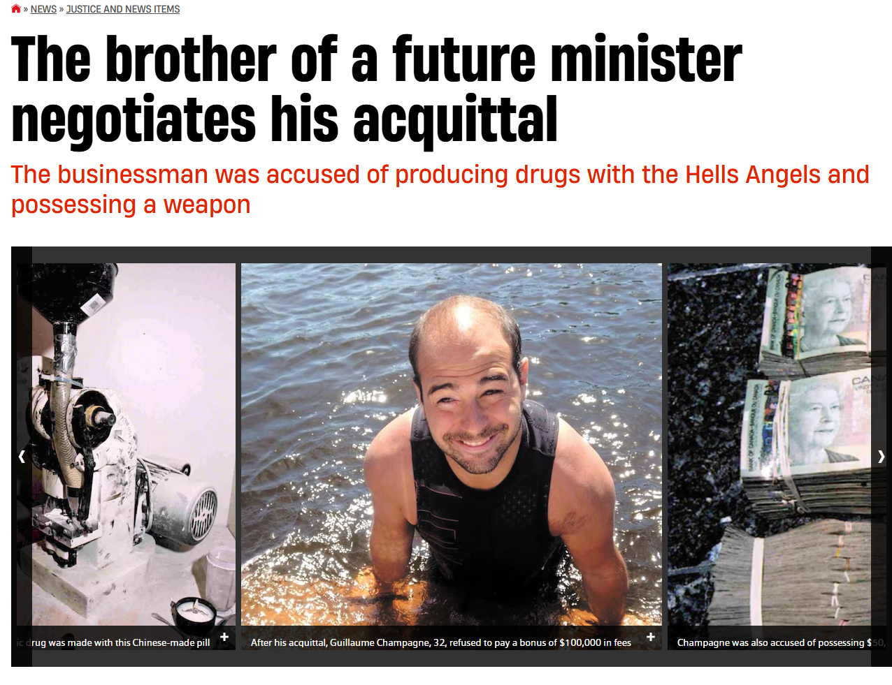 lol holy shit>A businessman indicted for operating a meth lab linked to the Hells Angels managed to "negotiate" his acquittal with the Crown as his brother, now a federal minister, prepared to enter politics.>In the basement, police seized 34,000 methamphetamine tablets, a pill press, 4,000 g of hashish and cannabis, a prohibited weapon – a 9mm caliber pistol– and $50,000. The 32-year-old man did not live in this house, but in four months of investigation, the police had seen him go there at least six times. He faced 11 charges.https://www.journaldemontreal.com/2017/03/13/le-frere-dun-futur-ministre-negocie-son-acquittement