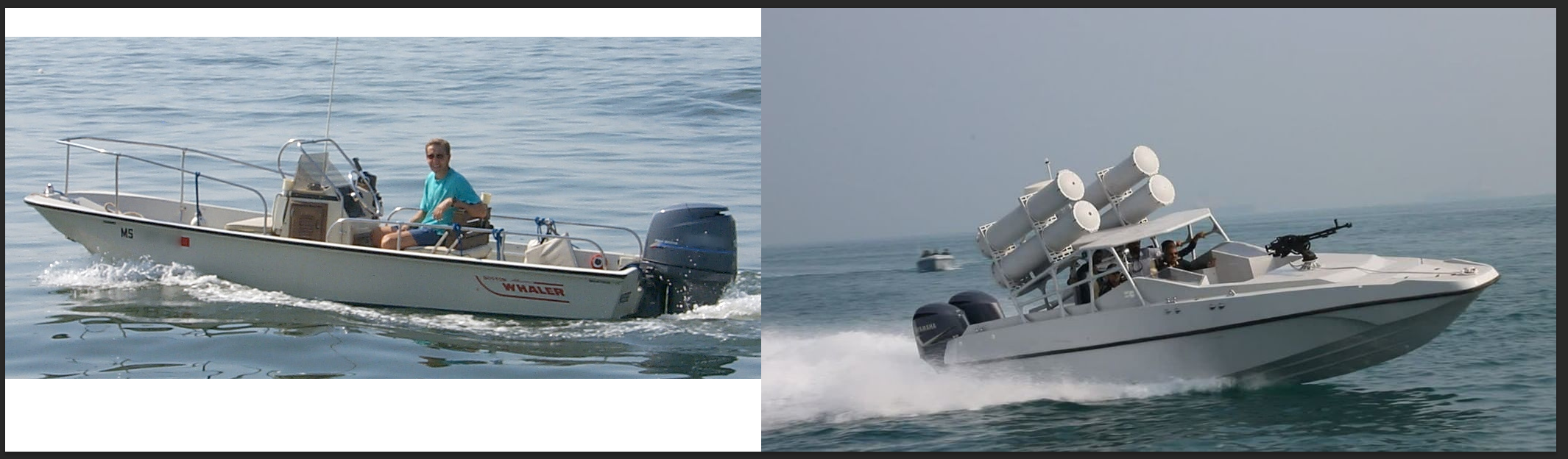 Blindly pitbulling AShMs is a bold move, cotton. Especially if you're not already hugging the CSG but instead need to find them behind the actual horizon, and have to convince the people who're responsible for firing it to wear fucking life jackets and swim back to the coast because people who aren't retarded can understand there's a slight difference between the left, which is what Van Ripper was using, and the right which is an actual Iranian speedboat.
