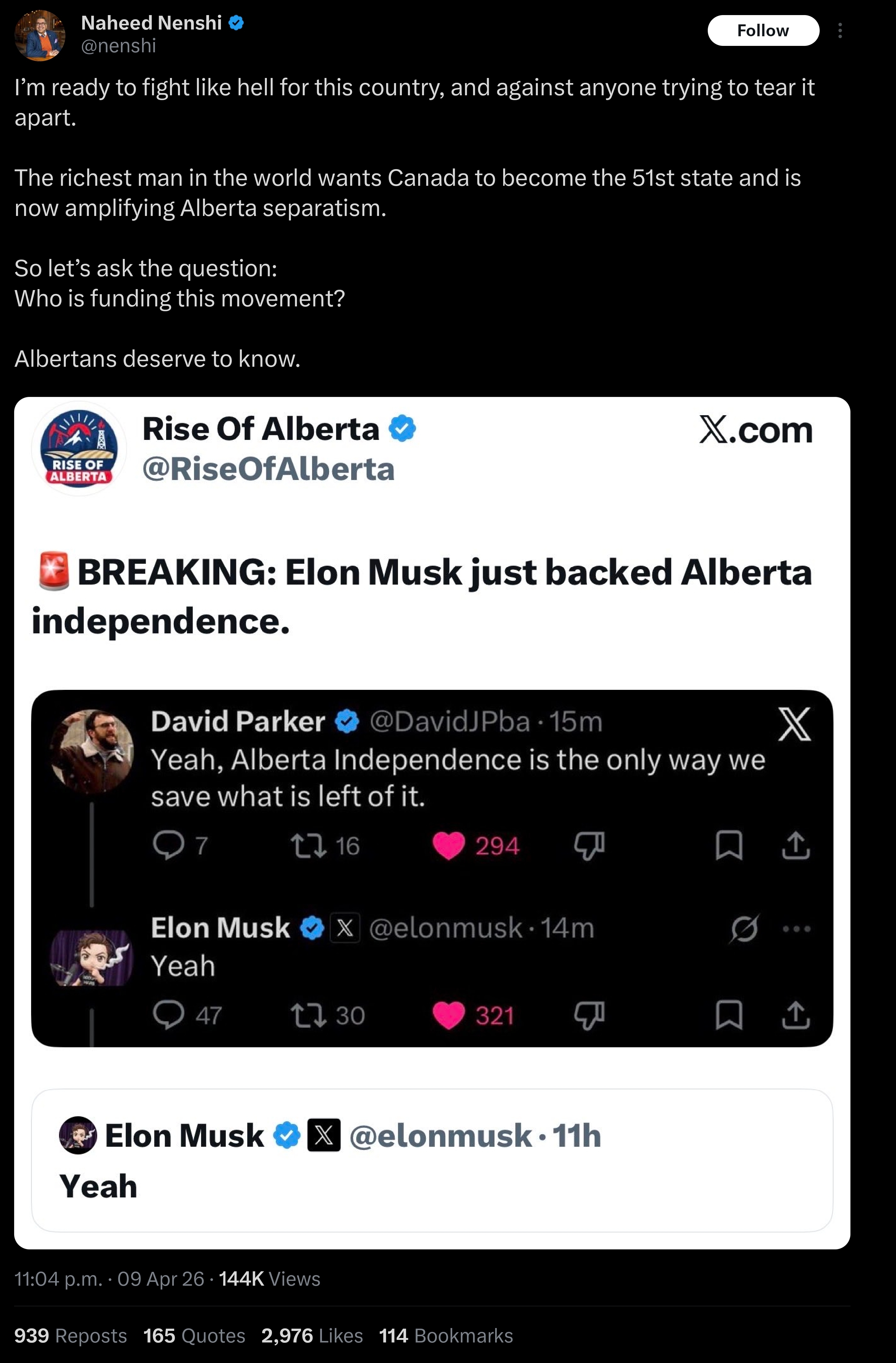 Who is funding the alberta separatist movement trying to tear our country apart? Canadians deserve an answer.