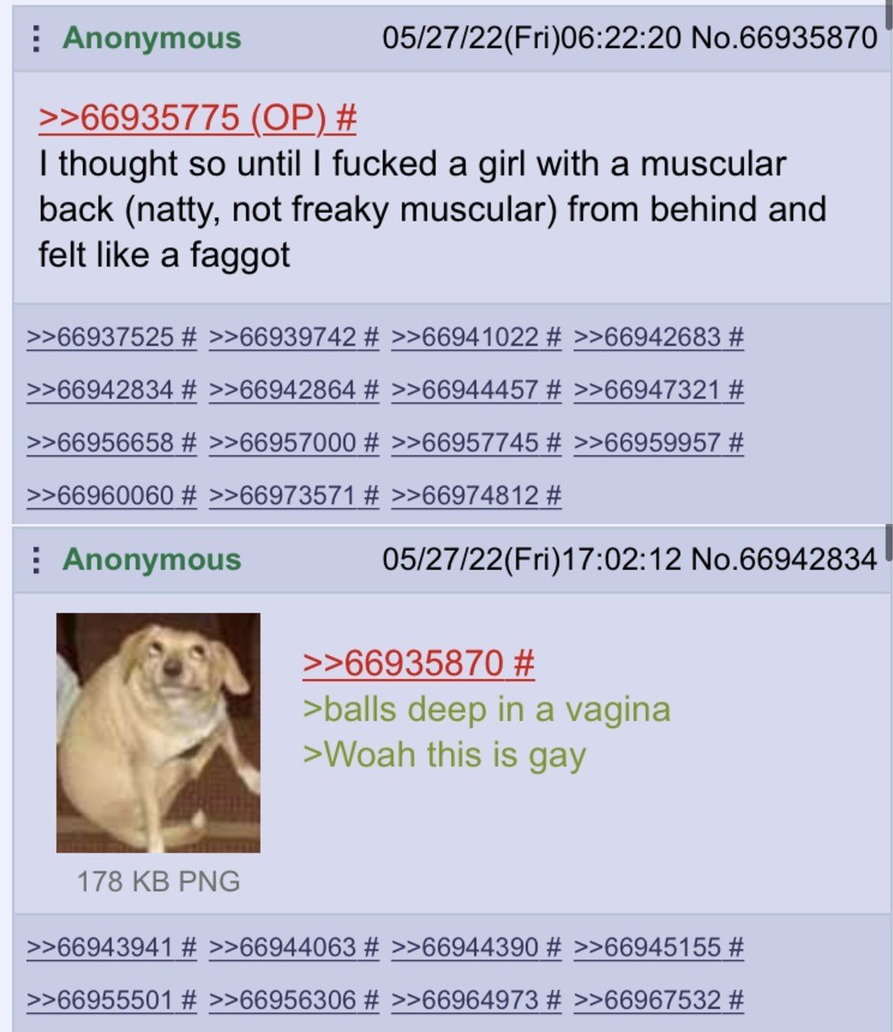 >>65061648>>65061660>>65061828>>65061946>>65062252I want to start off my post by saying I am not a homosexual patrician, high class thinkers like myself prefer slim women, you just wouldn’t get it.I am also not gay, unless getting pegged once makes me a fag(hint, it doesn’t)