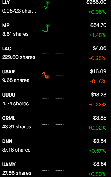 Not /biz/ and not investment advice nor is it one of my portfolios but i suggest buying as much LAC and DNN as you can with every spare penny you have. This screen shot is not mine nor is it investmet advice.