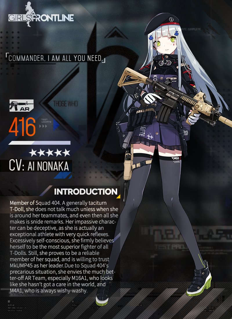 Gonna draw some 416, what should I put on her hat?