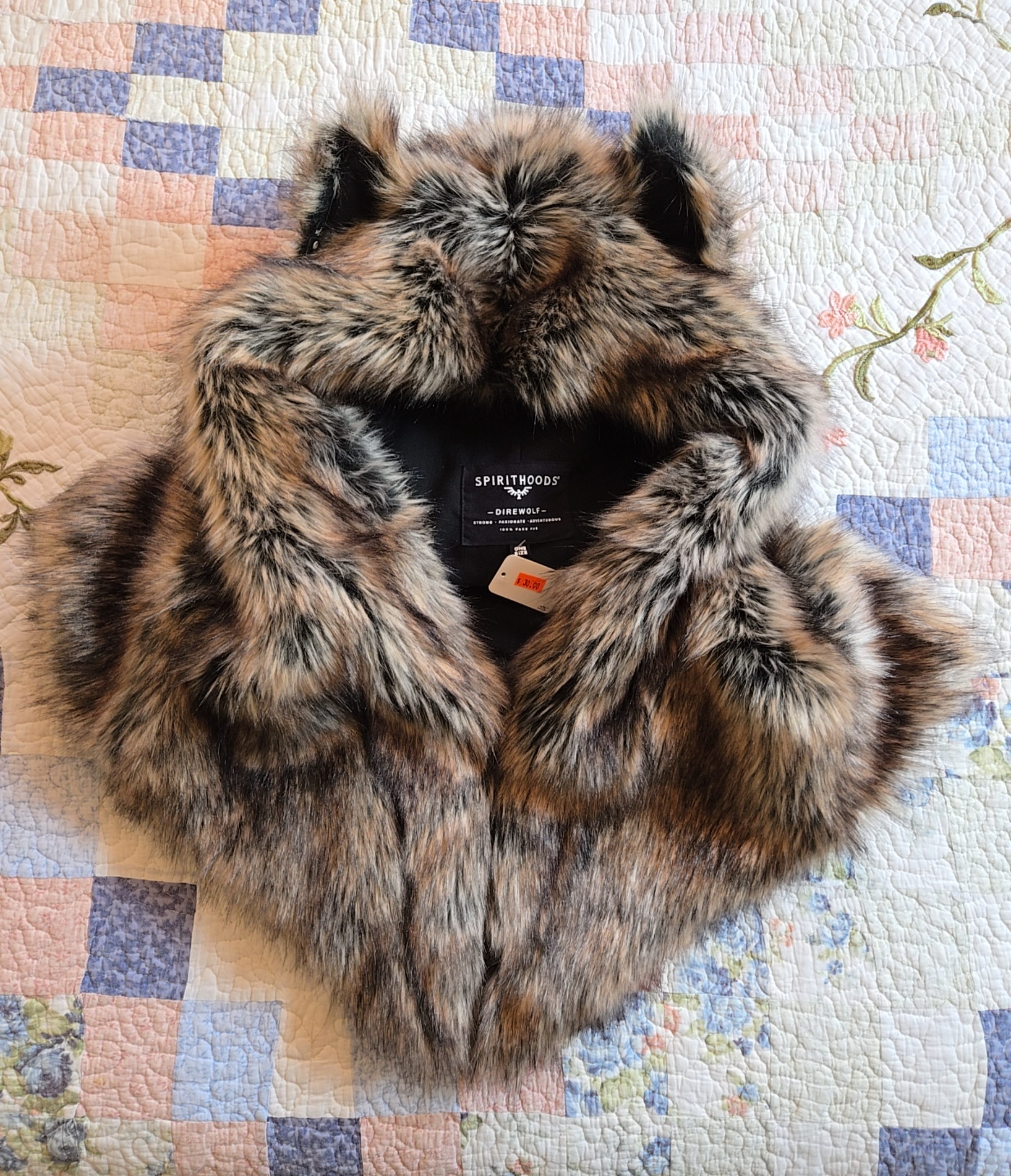 >>65086701>sixty bucksGetting sooo close. Picrel @a yard sale today, $20 down from $30. Retail:~$150 https://www.spirithoods.com/collections/rave-festival-hood-hat-shawl/products/dire-wolf-faux-fur-grey-shawl