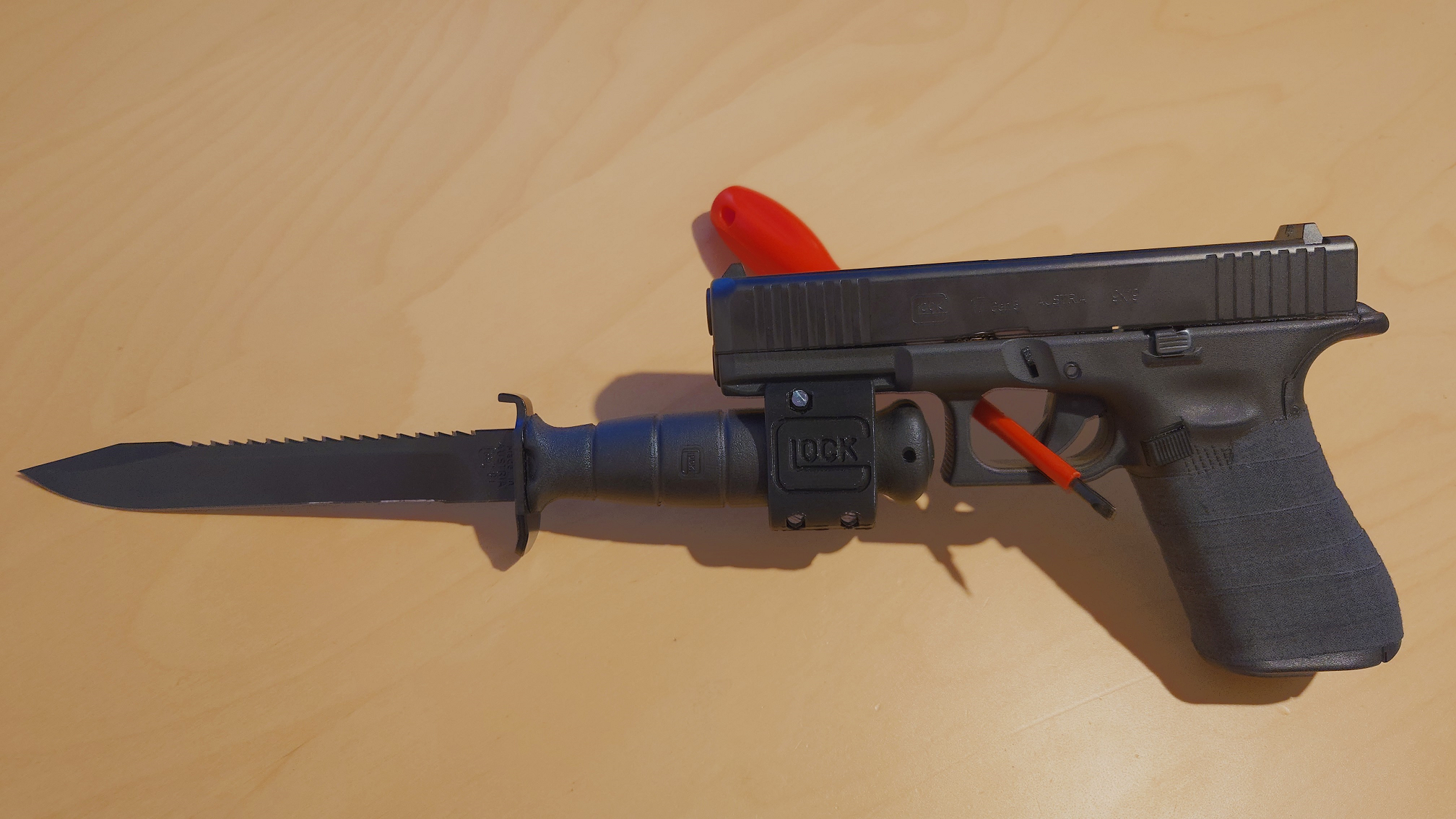 >Yo dawg, I heard yo like Glocks, so I put a Glock on yo Glock.Just because you can, doesn't mean you should.But this baby needs an MOS cut and a scope for long range stabbing.