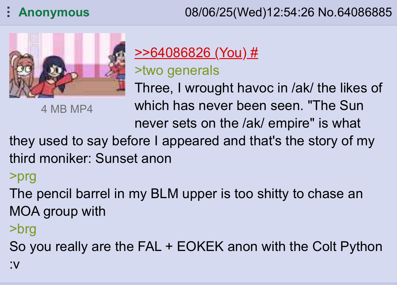 >>65083800i understand the tran accusations now. very odd to want to ruin good discussion about the generals’ respective firearms