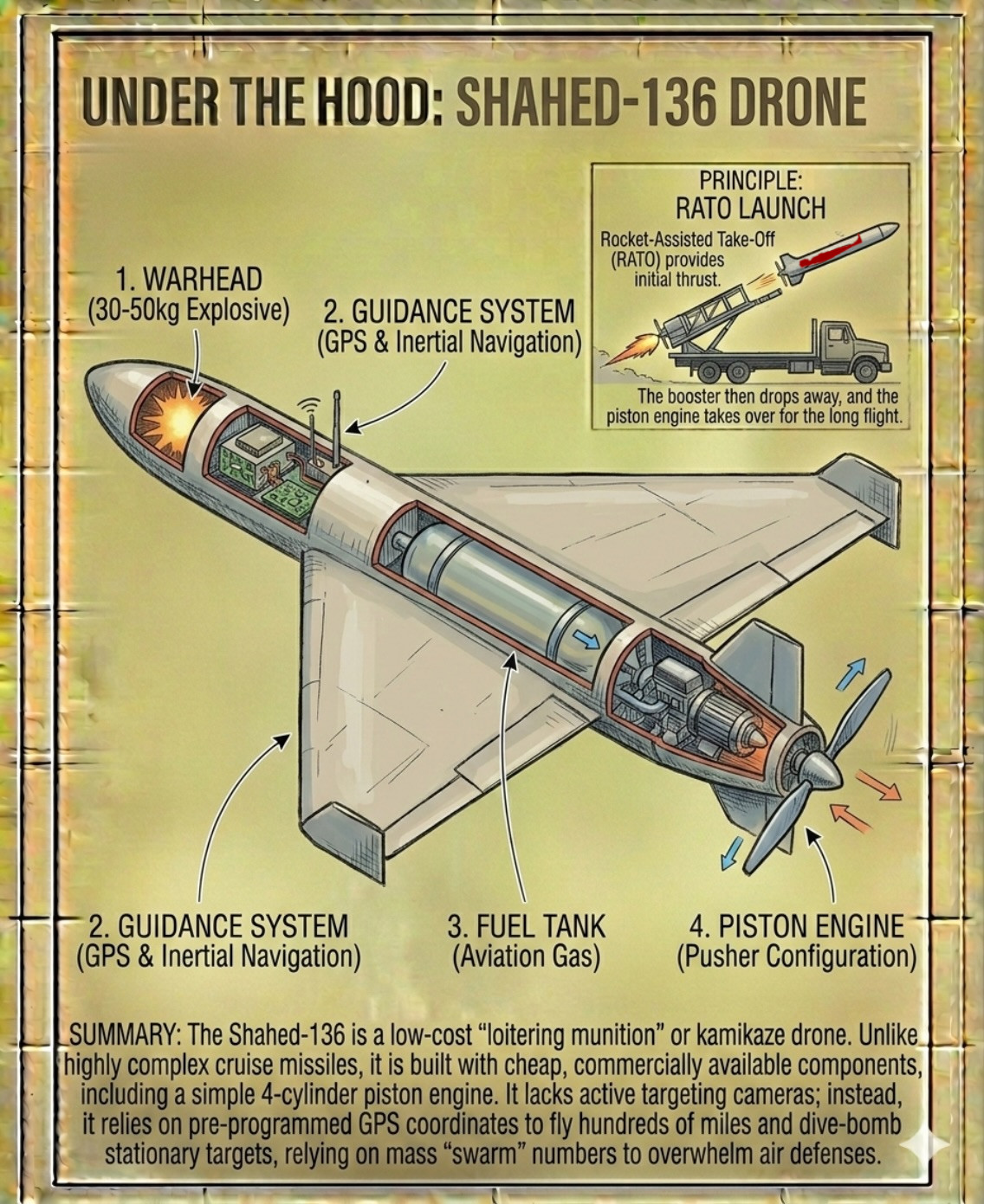 >>65086335>I could at the very least see them add fuel tanks for extended range and flight time.I guess, and maybe some of them do. But dunno if that's actually a limiting factor? IIRC a Yak-52 can go like, 2-3 hours or so at cruising speed (which is slow) so that'd be a range of like, ~300-350-ish miles. Their stall speed is just 55 mph, you can take them off from damn near fucking anywhere. So I assume they operate them in cells that each cover a zone of like 100 miles or so, little airfields that may just be converted road or actual fields with some support stuff, maybe some simple buildings or netting or whatever to give them some small drone coverage. Obviously this will be well back from the front line, they're trying to stop stuff going deep aiming to hit more maternity hospitals, apartments and pedestrian sidewalks with secret hato boris cloning labs beneath them. So they might well just not need more then they've got. They get the word shaheds are heading into their cell defense zone, they head out and get everything they can, they head back.