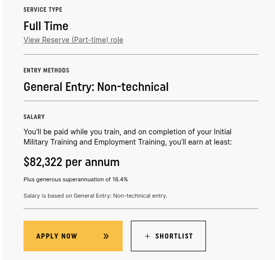 >>65085966>I've met a rifleman who claimed to be above 105k with extra certificationsYeah but how representative is he?>Two soldiers making just about as much as a Doctor is actually pretty wildThe doctor doesn't risk his life.What's wild is that you'd think having 1 soldier out of 100 people is a pretty basic requirement for defence and security, but the ADF is only 1/5th that figure.