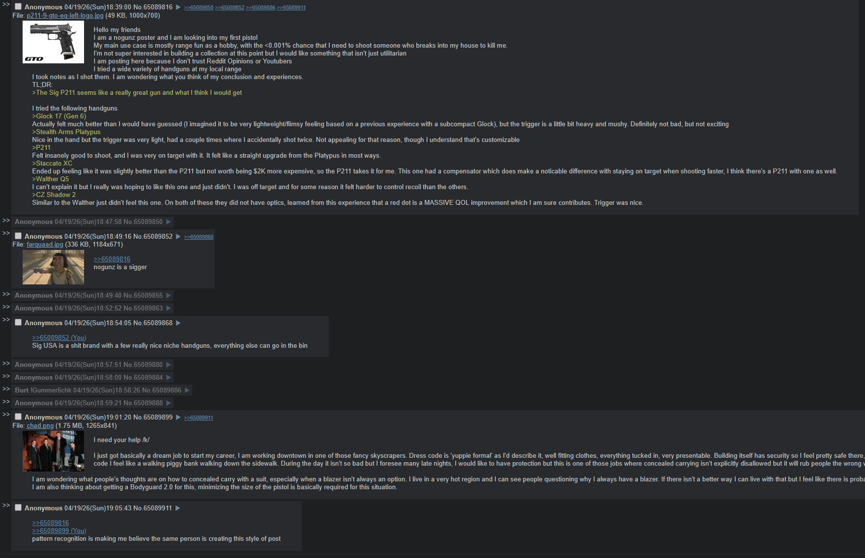 >>65089911I called that anon a sigger. I have class and wouldn't praise Sig or their siggers, I'm not some kind of animal