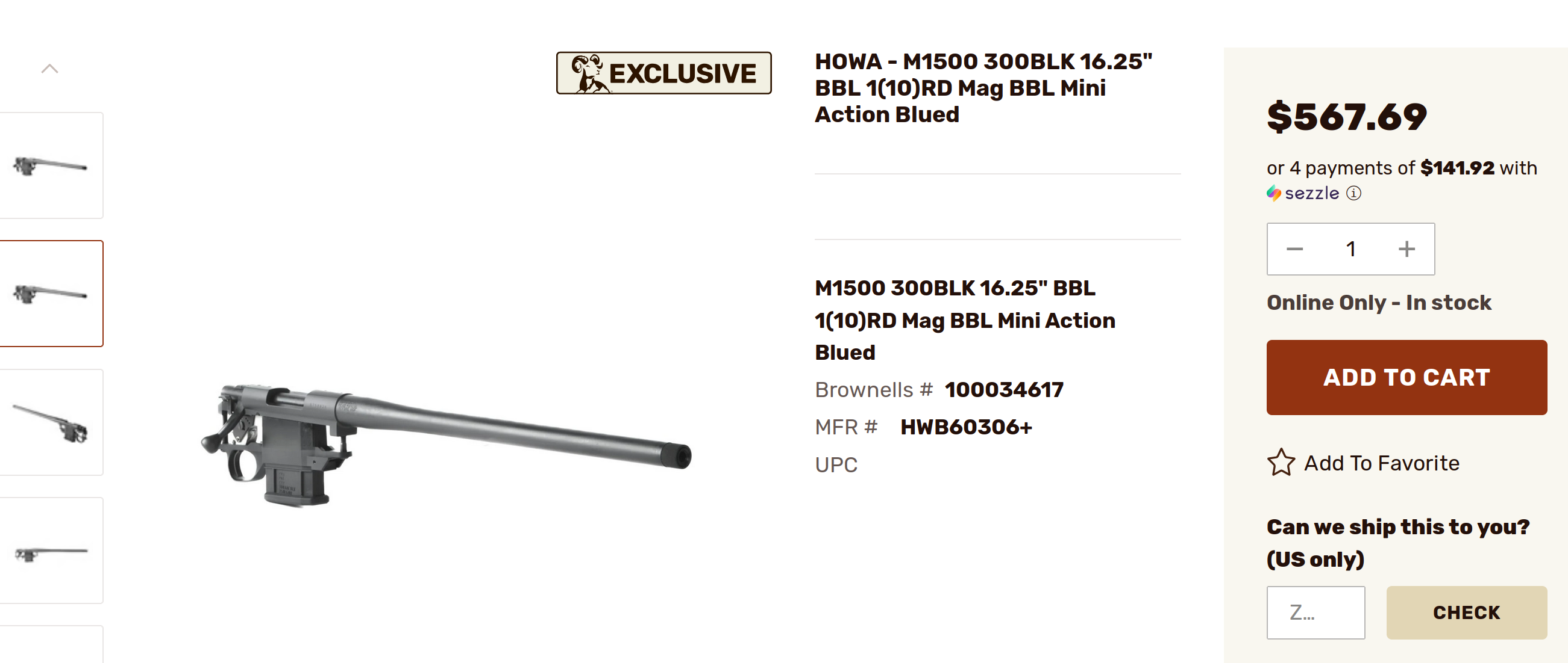 >>65092952>The Howa 1500 barreled actions are manufactured, exported, imported and sold as "rifles"I am hearing something different after a quick search... are you sure anon? I do want you to be wrong on this, of course. I will try getting in touch with Brownells to confirm