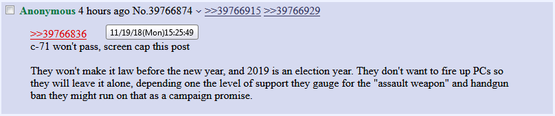 >>65093968>and losing support from Poly.The thing is nobody would care about this outside of Poly, nobody even knows who they are even with the CBC parading them out every time guns are mentioned on the news.