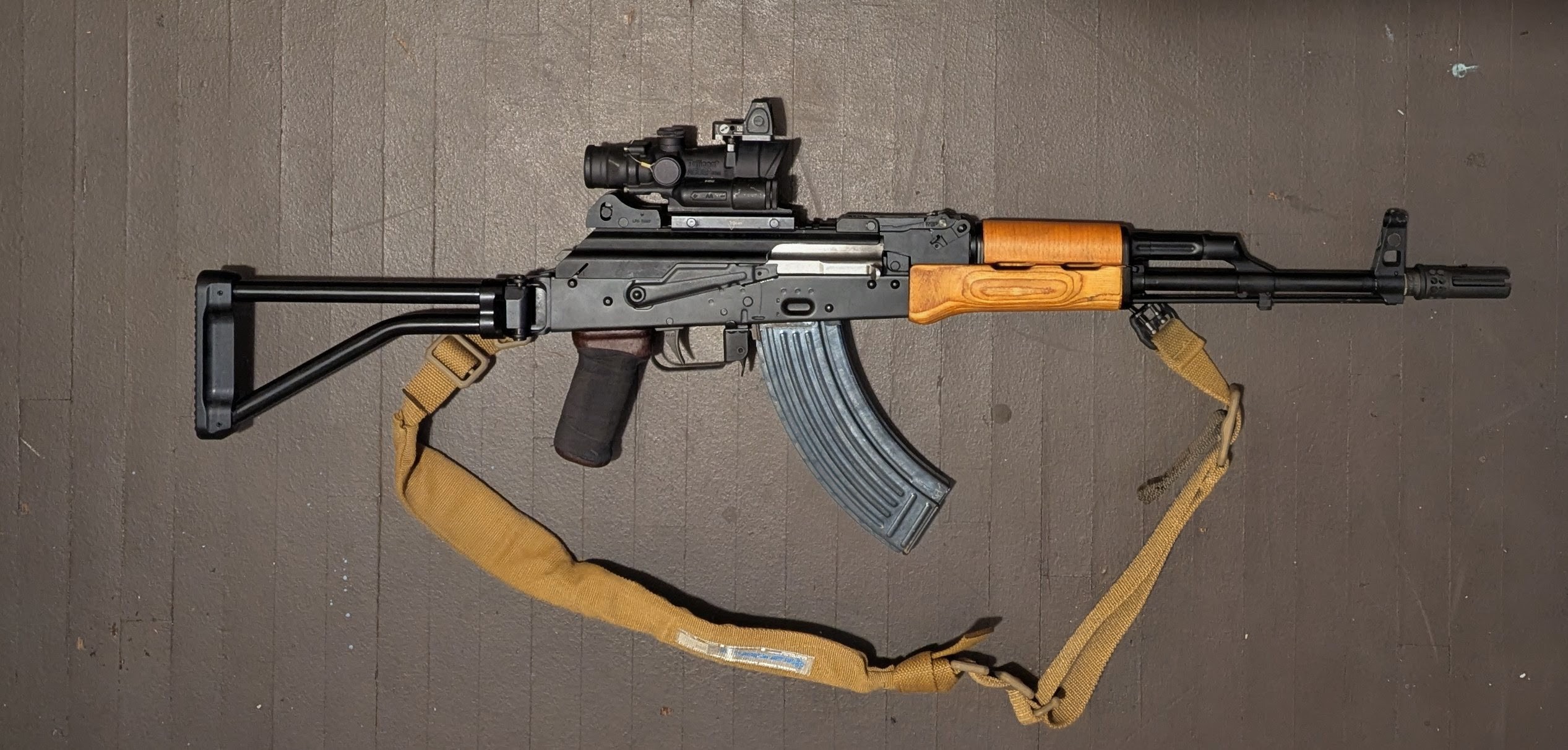 >>65093298Yep. Lpvo or dot are your only options with that long of a length of pull. I have a similar galil style folding stock on my Polish AKM with a railed dust cover and i can see maybe 40% of the FOV out of the ACOG. Trying to figure out a solution since I really like the aesthetics of the stock and the LPA rear sight but one of them has to go...>T. Amerimutt