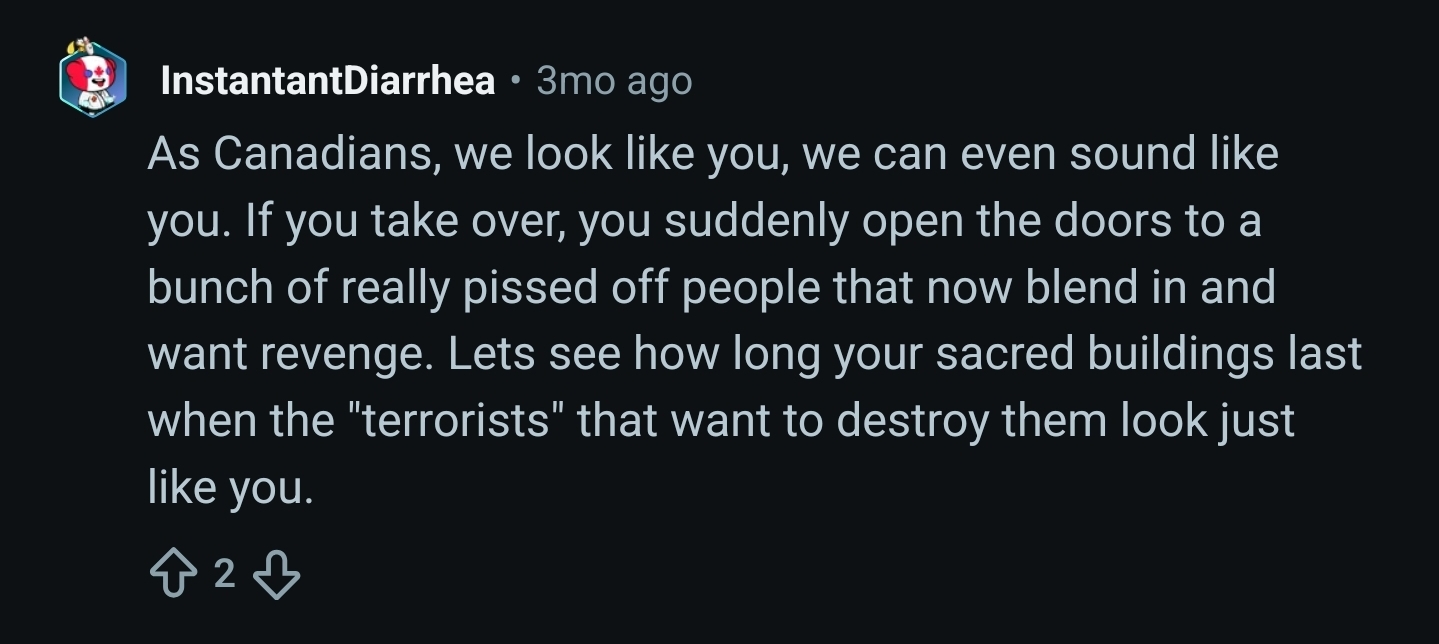 >>65094855If the Americans do invade I've decided that I'll use my guns as part of a collaborationist militia to ruthlessly root out pro-Canadian insurgents and terrorise their families.