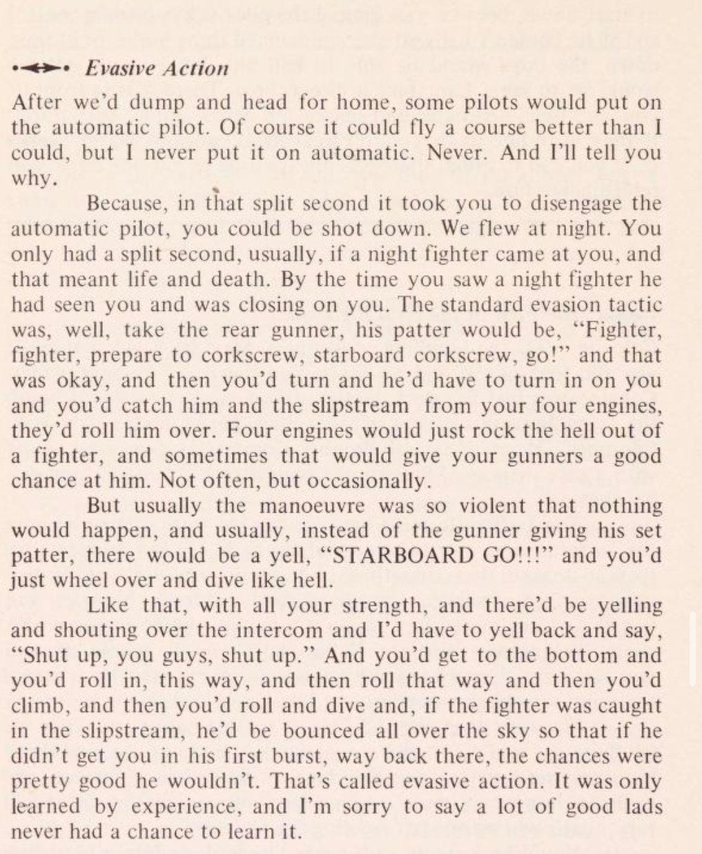 Yeah they often did lol. Other than the fact that mutual cooperation with said small trained unit often takes a higher degree of competence, Bombers had to maneuver like mad constantly.
